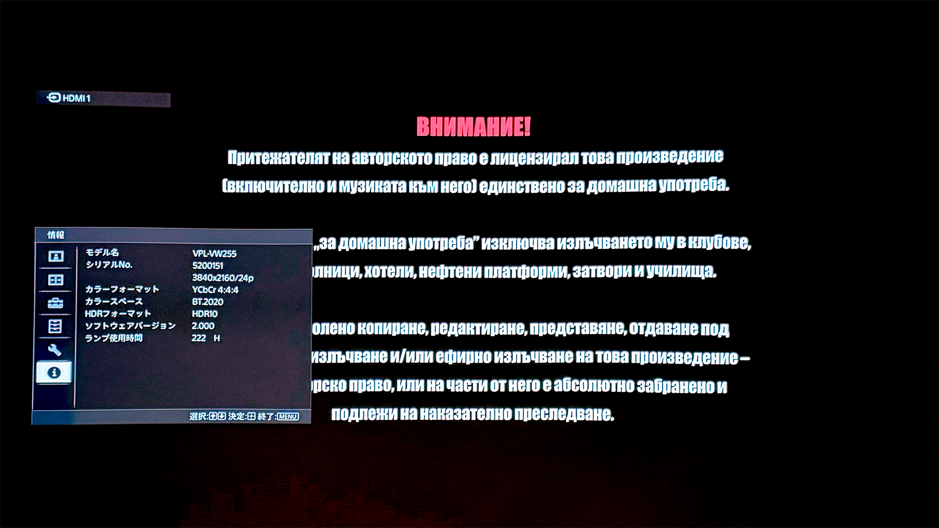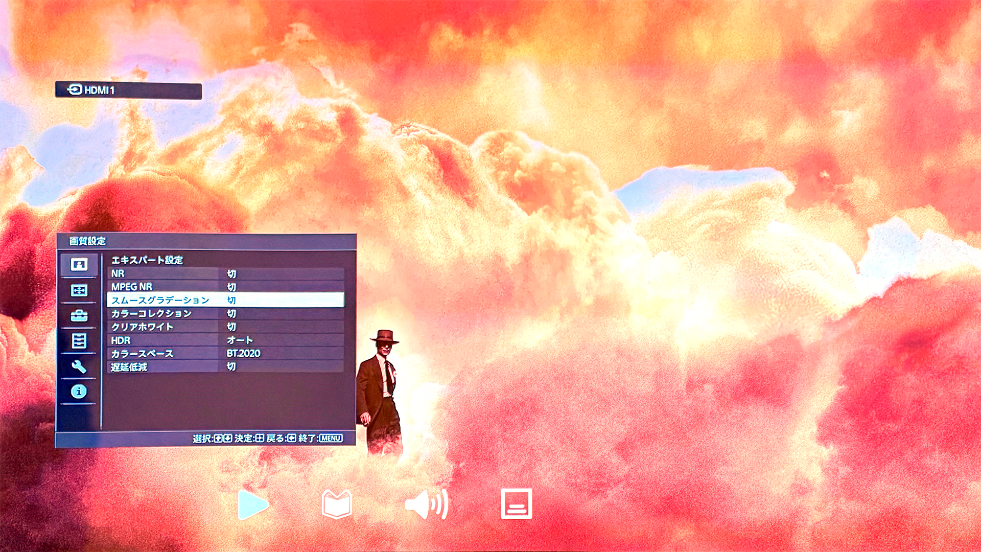元旦に観たのが、プレデター:ザ・プレイ。この盤の視聴の冒頭で、凄い違和感を感じる。冒頭に、洞穴の暗いシーンがあるのだが、シャドウ部が潰れて、階調が飛んでいるのだ。はじめ、視覚効果の演出なのか?と思ったくらいだが、その後も暗いシーンだと必ずそうなる。正直、観るに堪えない。 ![]() この日は、この盤に起因するものかもしれないので諦め、翌日オッペンハイマーを視聴した。プレデターほど暗いシーンは無いので気にならなかったが、それでもやはり、階調飛びが出ている。 この時ふと、何かこれら盤の特殊性に起因しないか、という考えが頭をよぎった。そう、階調と言えば色空間やHDRだ。 オッペンハイマーの視聴後、プロジェクターのメニュー操作で入力ソースのフォーマットを確認する。 ![]() カラースペース:BT2020 HDRフォーマット:HDR10 となっている。やはり、HDR周りの問題なのか? しかし、自分の使っているVPL-VW255はちゃんとHDRに対応したモデルだ。非対応のモデルならまだしも、対応機でこのような不具合が生じるのか?? HDRや階調、WV255をキーワードにして、googleで検索したら、同じような事例が出てきた・・。 VPL-VW275の口コミだが、以下。 https://bbs.kakaku.com/bbs/K0001349960/SortID=24868683/ 全く同じだ。ハリーポッターと不死鳥の騎士団の冒頭で、最も暗い部分だけ黒く塗りつぶしたようになる、と書かれている。この口コミでは、Netflixの動画でも発生すると書かれている。 投稿者によると、ダイナミックレンジをフルにすると階調落ちは発生しない、となるが、当然ながら全体に白っぽく浮いた色味になってしまう。 また、SONYに問い合わせたが、不具合ではなく仕様、明るさ調整で対応して欲しい、という回答しか得られなかったとのこと。 2022年の投稿で、一か月ほどアクティブに議論されたが、以下が情報として得られた。 ・SXRD機(D-ILAも同様のよう)で発生して、DLPでは発生しない ・スムーズグラデーションをOFFにしたら改善された この情報を元に、自分環境でもスムーズグラデーションを既定の弱から、OFFに変えてみた。 ![]() 多少は出ていたのかもしれないが、気付くことはなかった。 これなら十分、実用に耐える。 SONYの購入プロジェクターでHDRのプロジェクターがまともに再生できないのはどうしたものか、と思うが、取り敢えずは落ち着くことができた。Webの情報に感謝したい。 <20-05-10>
