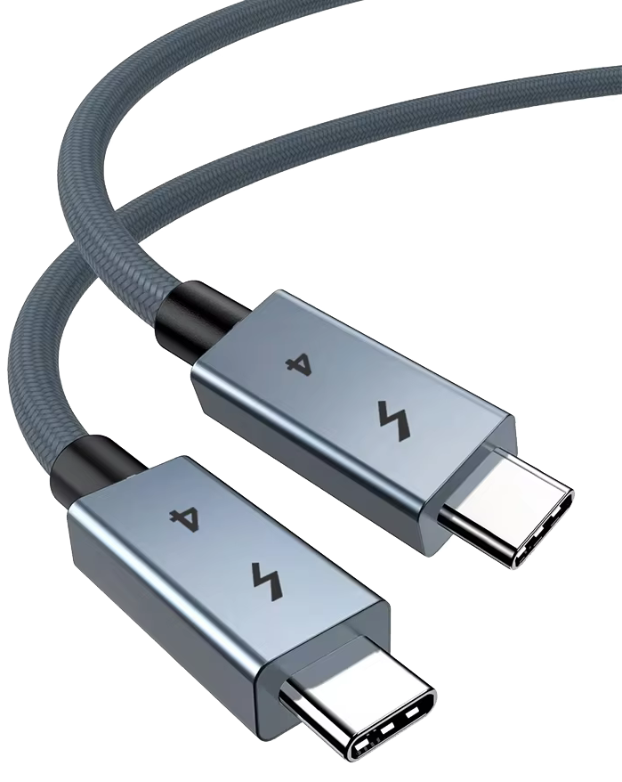 付属ケーブルではイマイチで、別のTB4ケーブルに交換したらスピードが出て、というレビューもある。