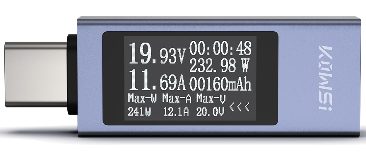 昨年、FNB58というFW更新も可能なチェッカーを購入しているが、少し使いづらいので、電流・電圧を計測するだけならこの製品の方が簡単そうだ。