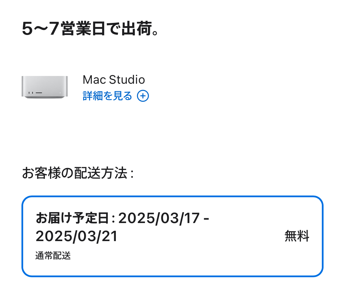 発送は3/17-21の間。特に急いでいないので、全く問題ない。