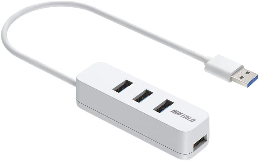 ELECOMやBuffaloなどから、複数の機種が発売されているが、ケーブル長が30cmと丁度良く、評価を見てもケーブルも細めで筐体もコンパクトのようなので、BuffaloのUSB3.0の白モデルにする。
