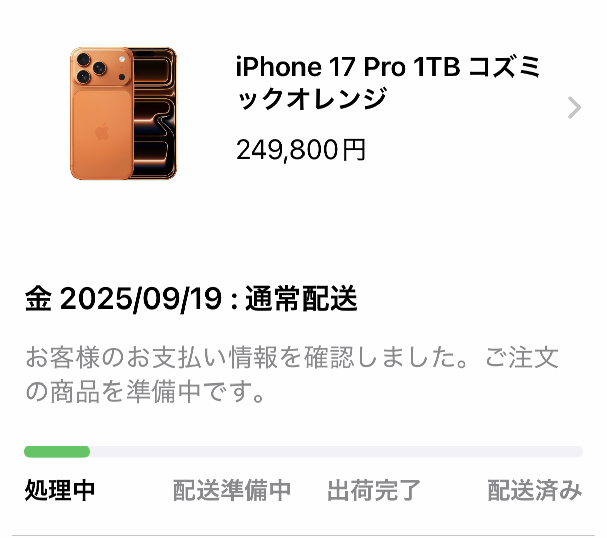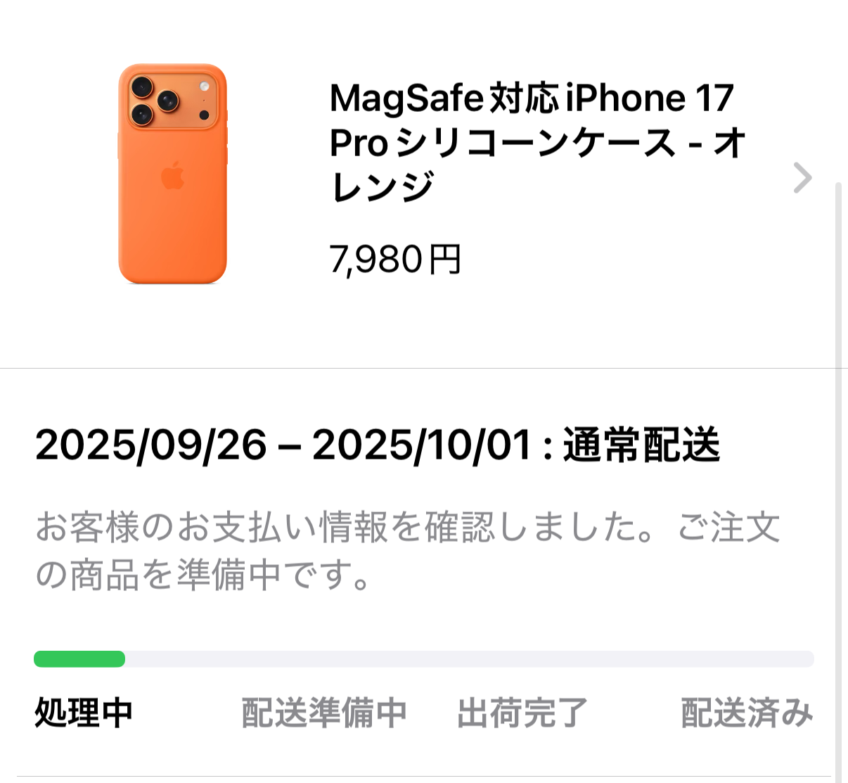 びっくりしたのは、本体は発売日に9/19お届けだが、シリコンケースが9/26-10/1の配送になっていること。