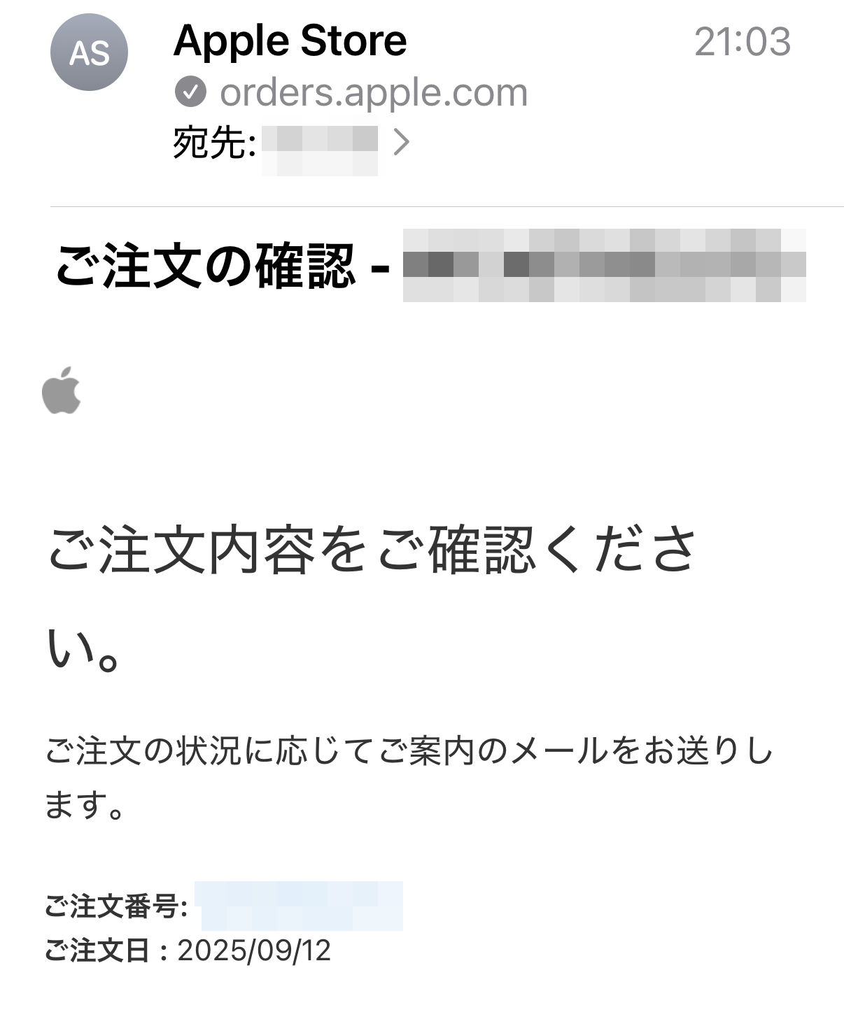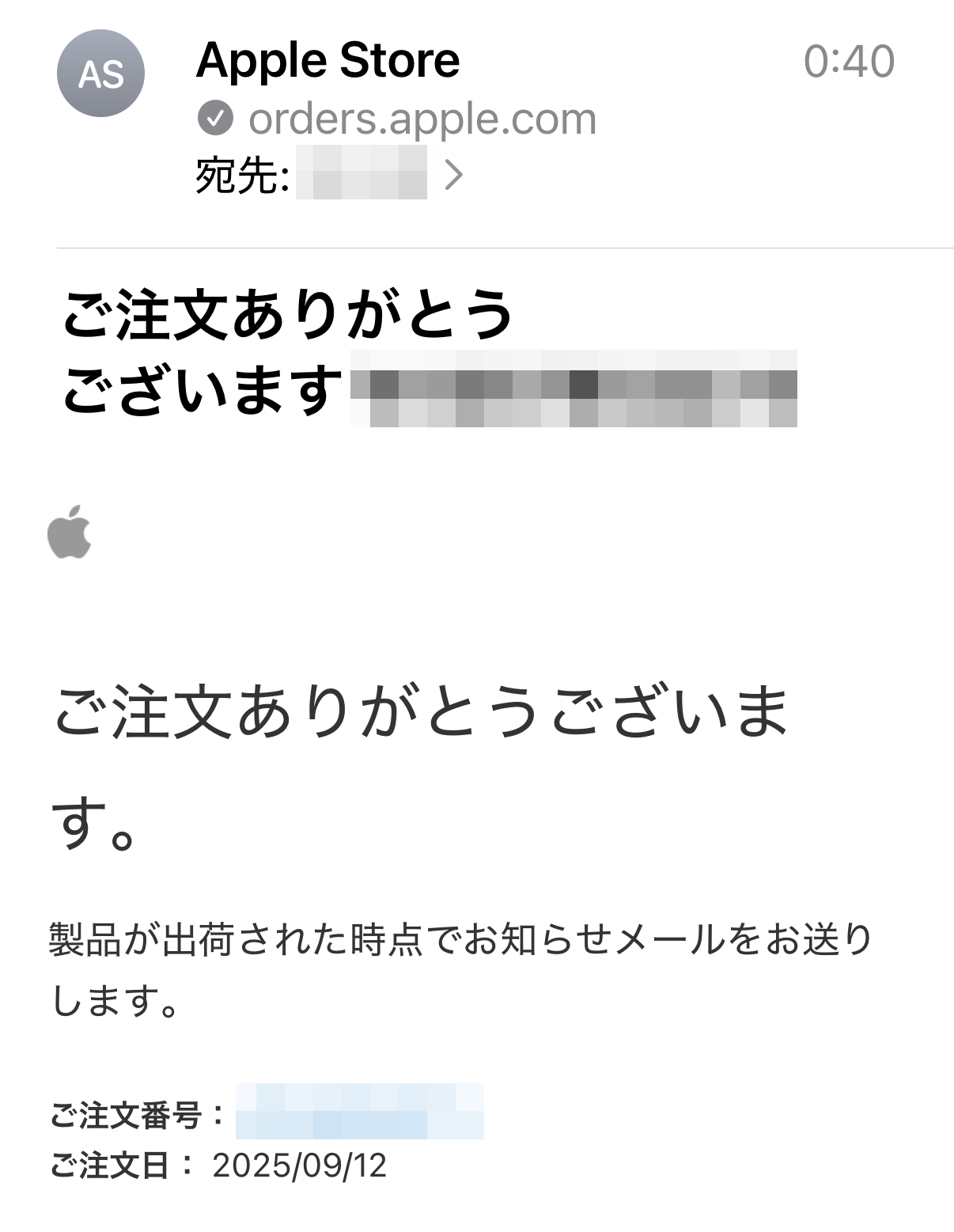 注文の確認メールもすぐ届く。でも恐らく、その後にカード決済の確定処理が必要になるのだろうな・・。