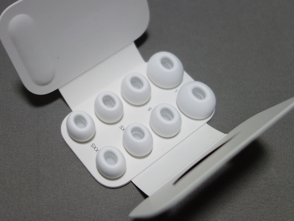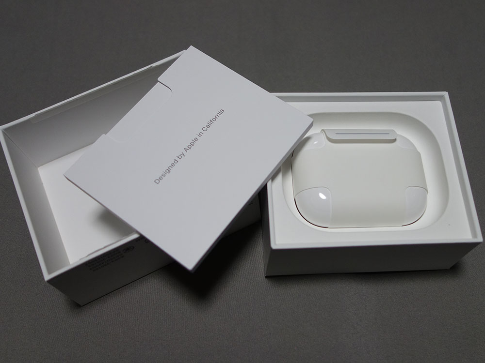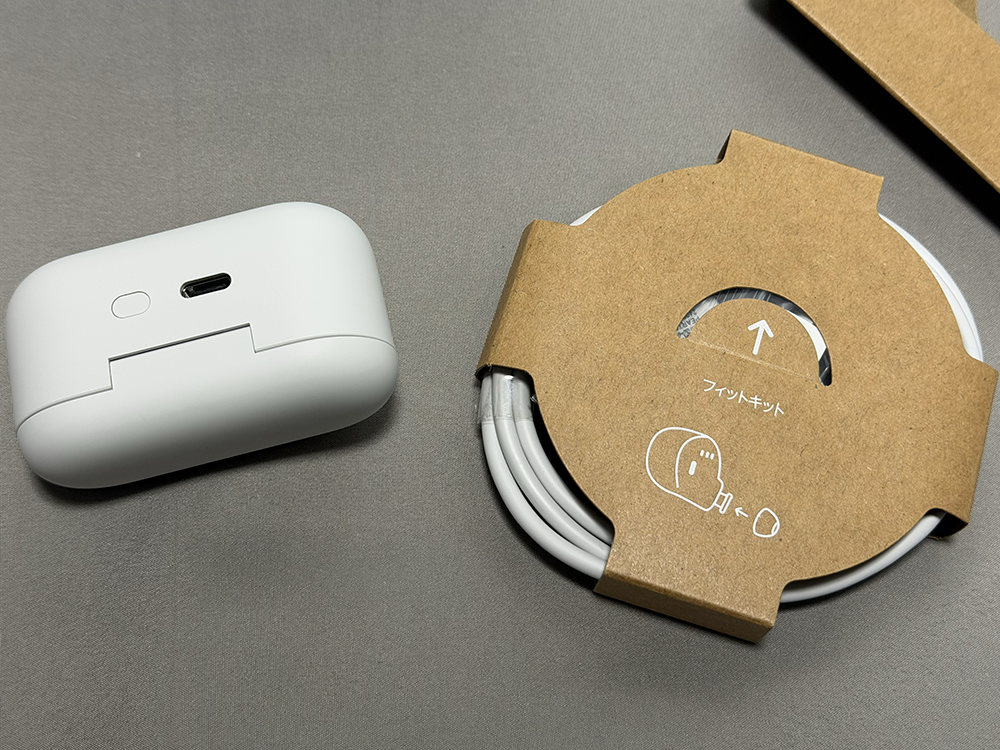 開封すると、本体が現れ、その下にUSBケーブルと換えのイヤーチップが収納されている。