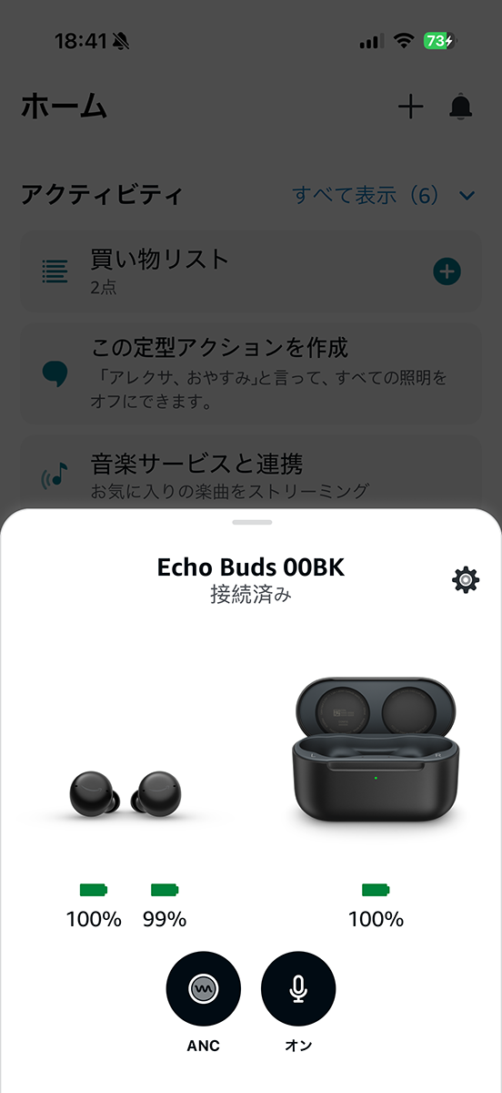 色々試行しながら暫く放置していたら、ようやくAlexaアプリにイヤホンが表示された。