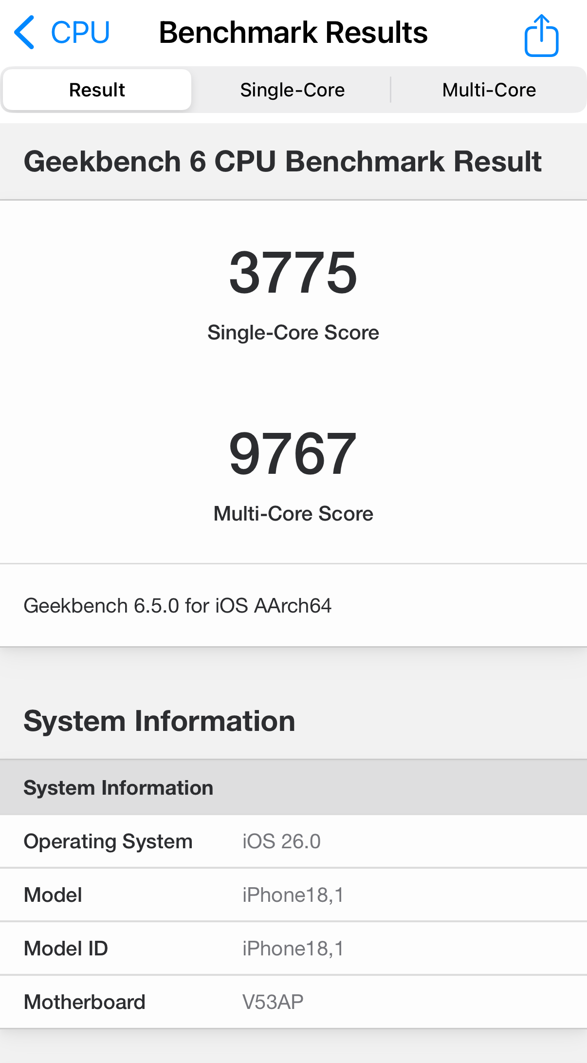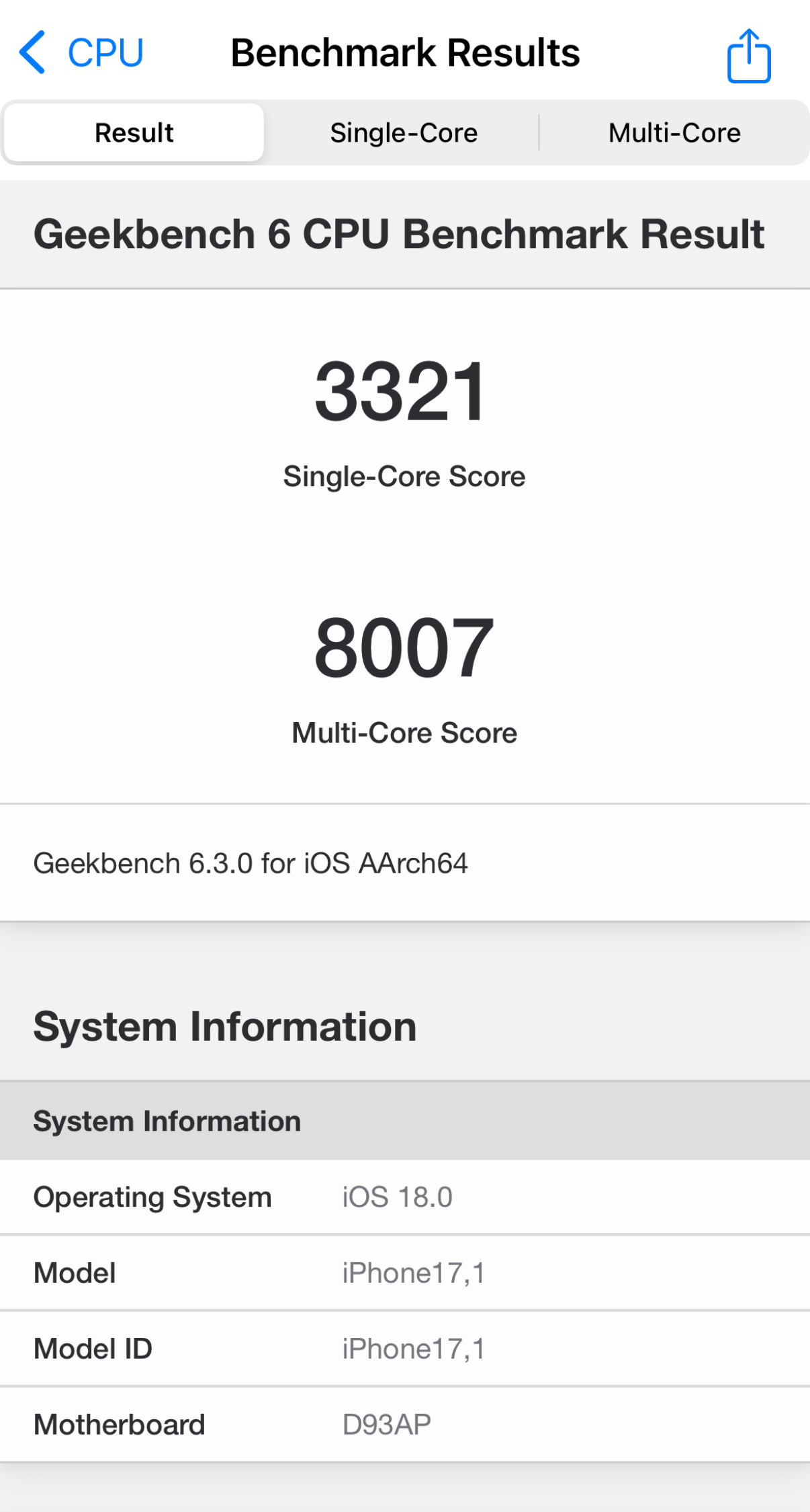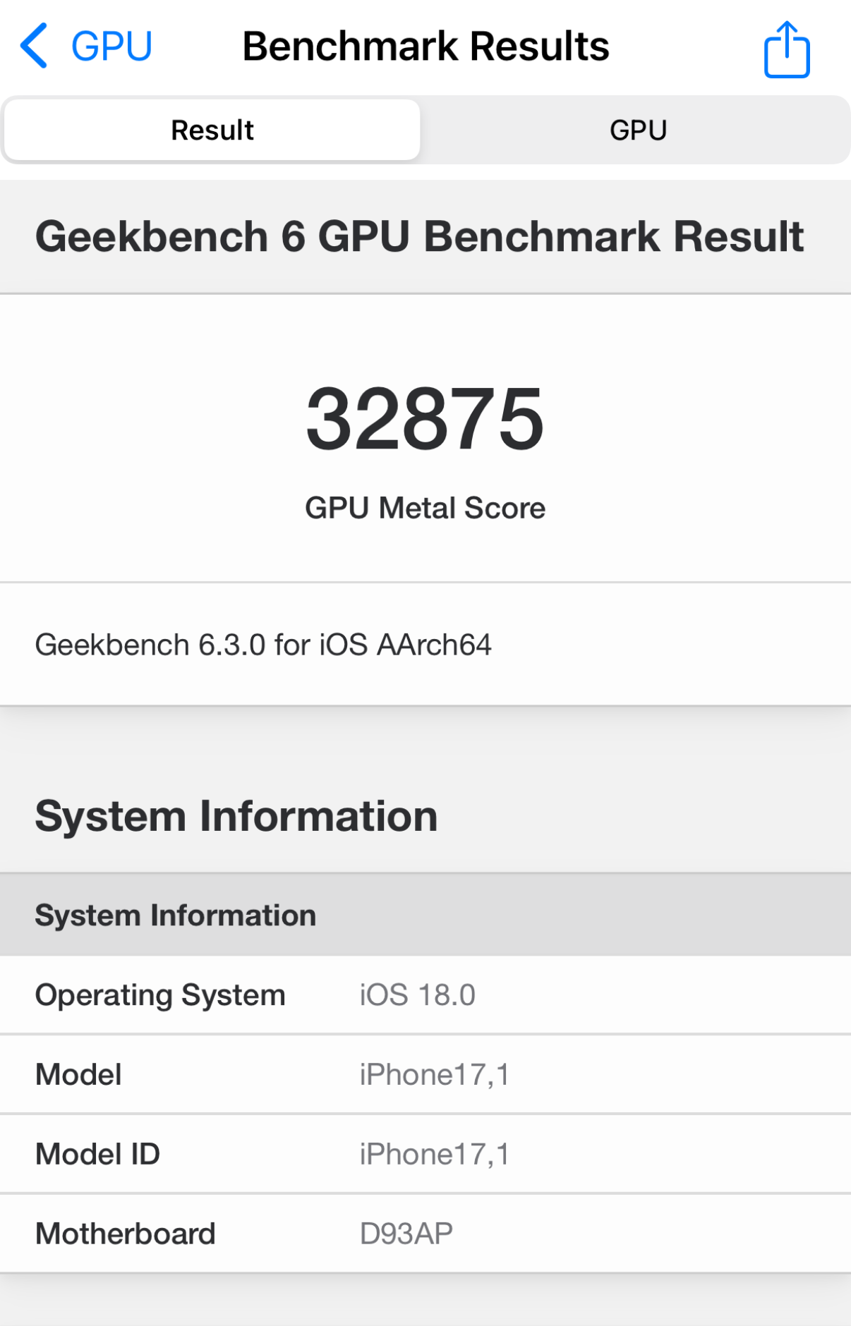 iPhone 17 Proのベンチマークをとってなかったので、GeekBench 6で取得する。