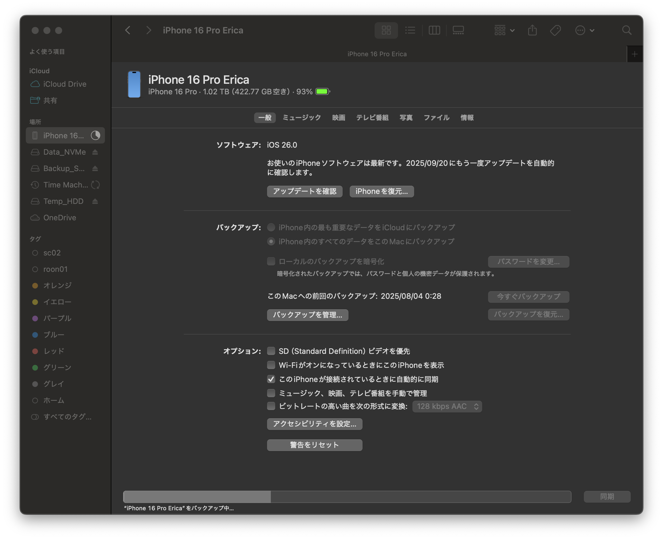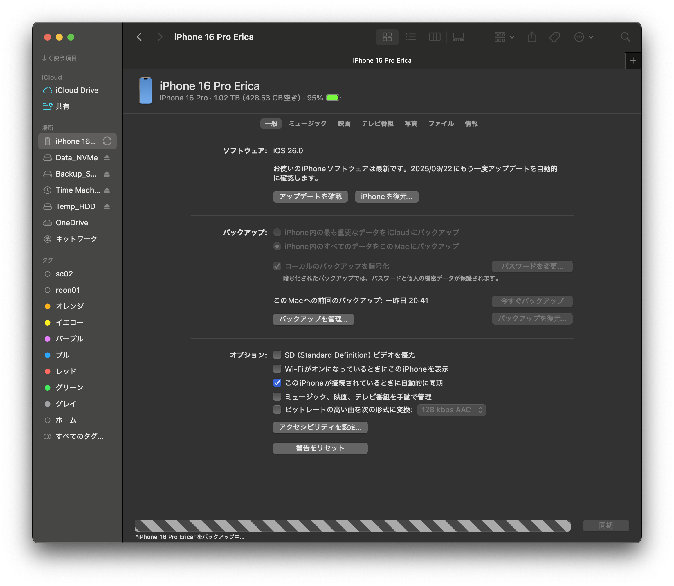 今一度、iPhoneのバックアップ・復元について調べると、今更ながら、初歩的なことが分かった。