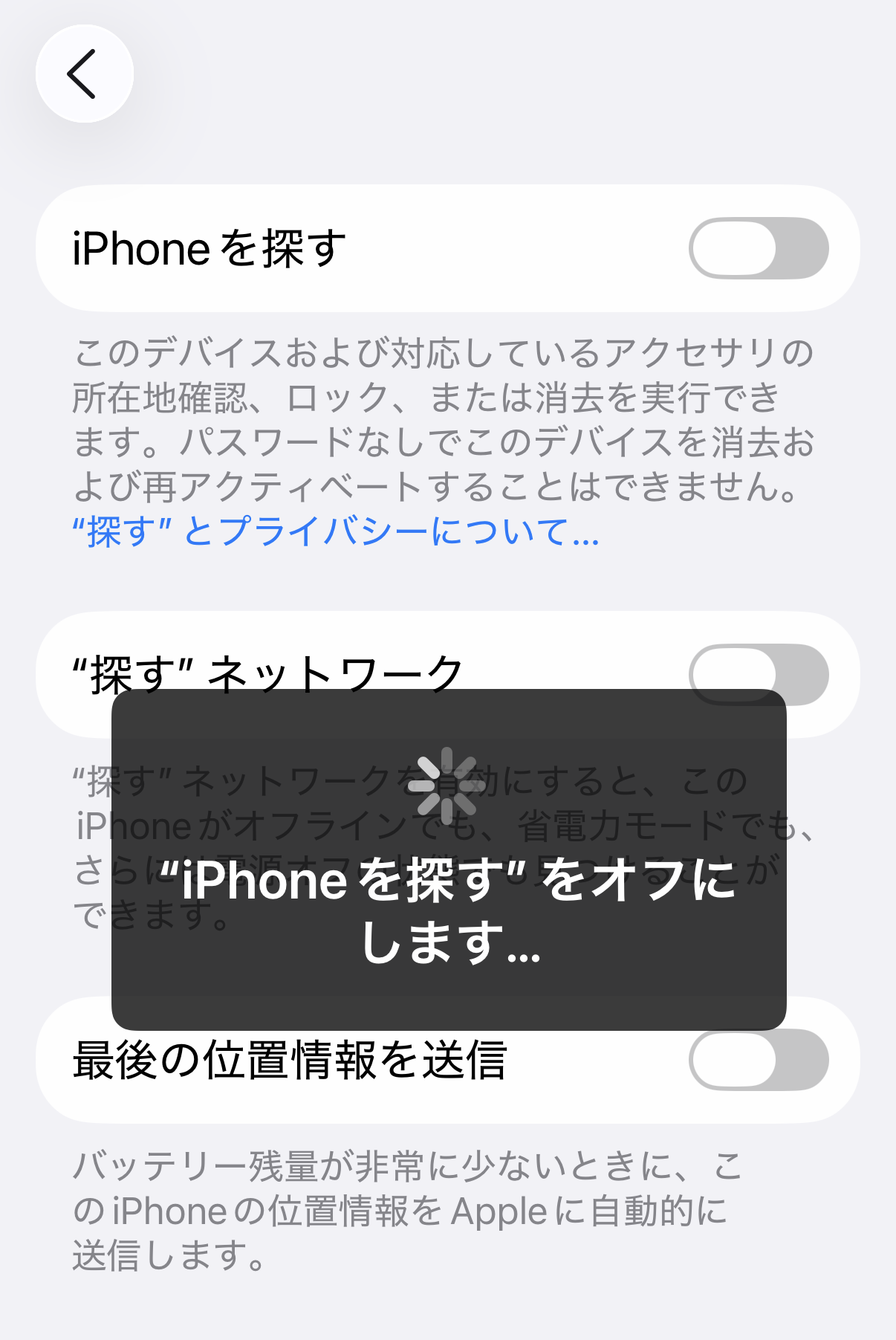 旧端末のバックアップが完了したので、新端末を初期化する。