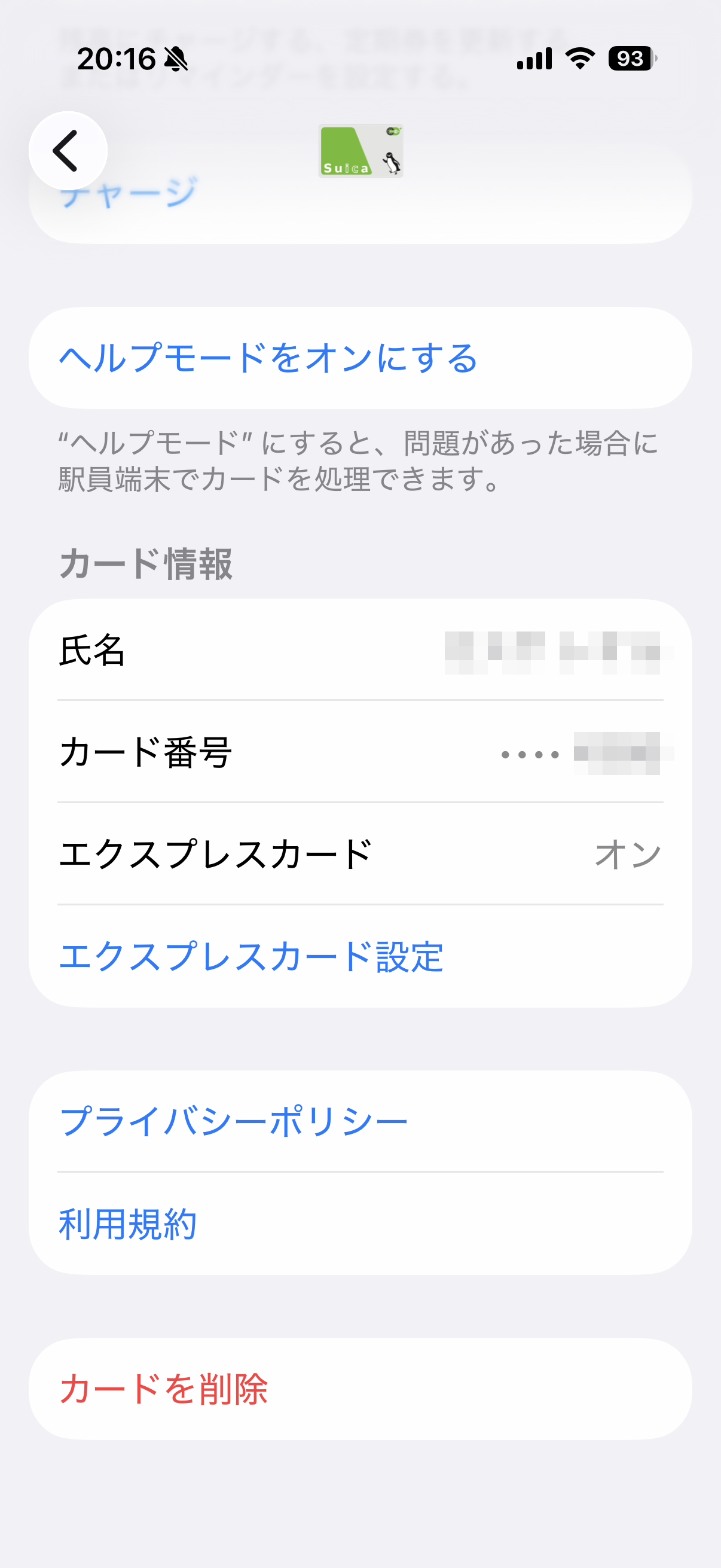 新端末の方も、SUICAとVISAカードのウォレットを削除する。
