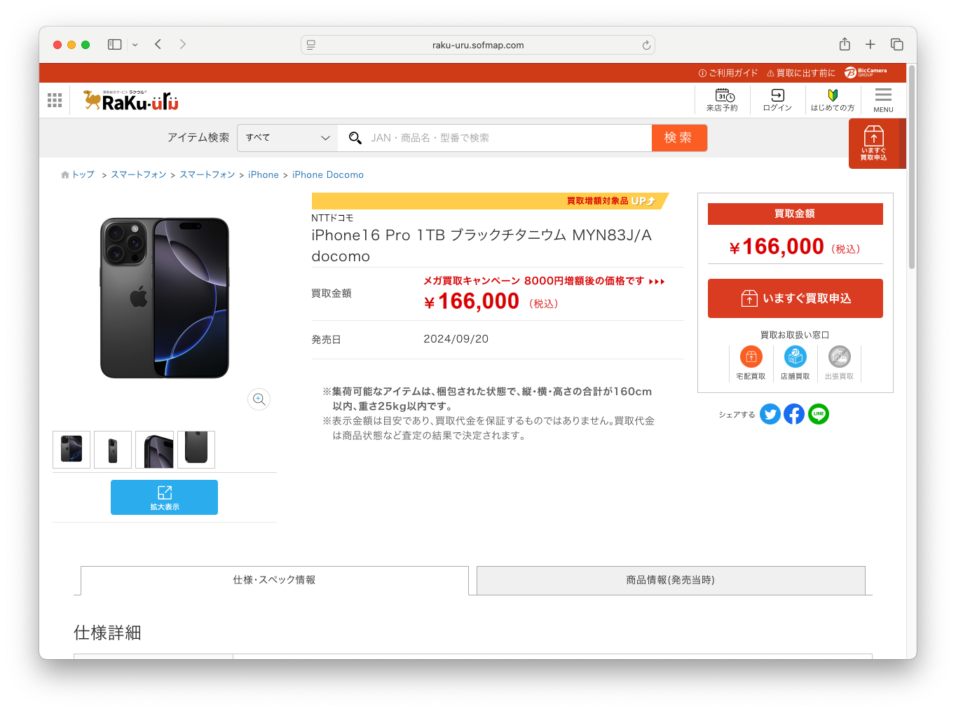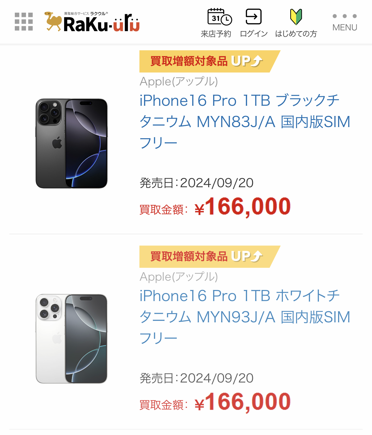 すでにビックカメラ(Sofmap)のラクウル渋谷で13:00に店舗予約済みで、ここの上限買取額が166,000円。