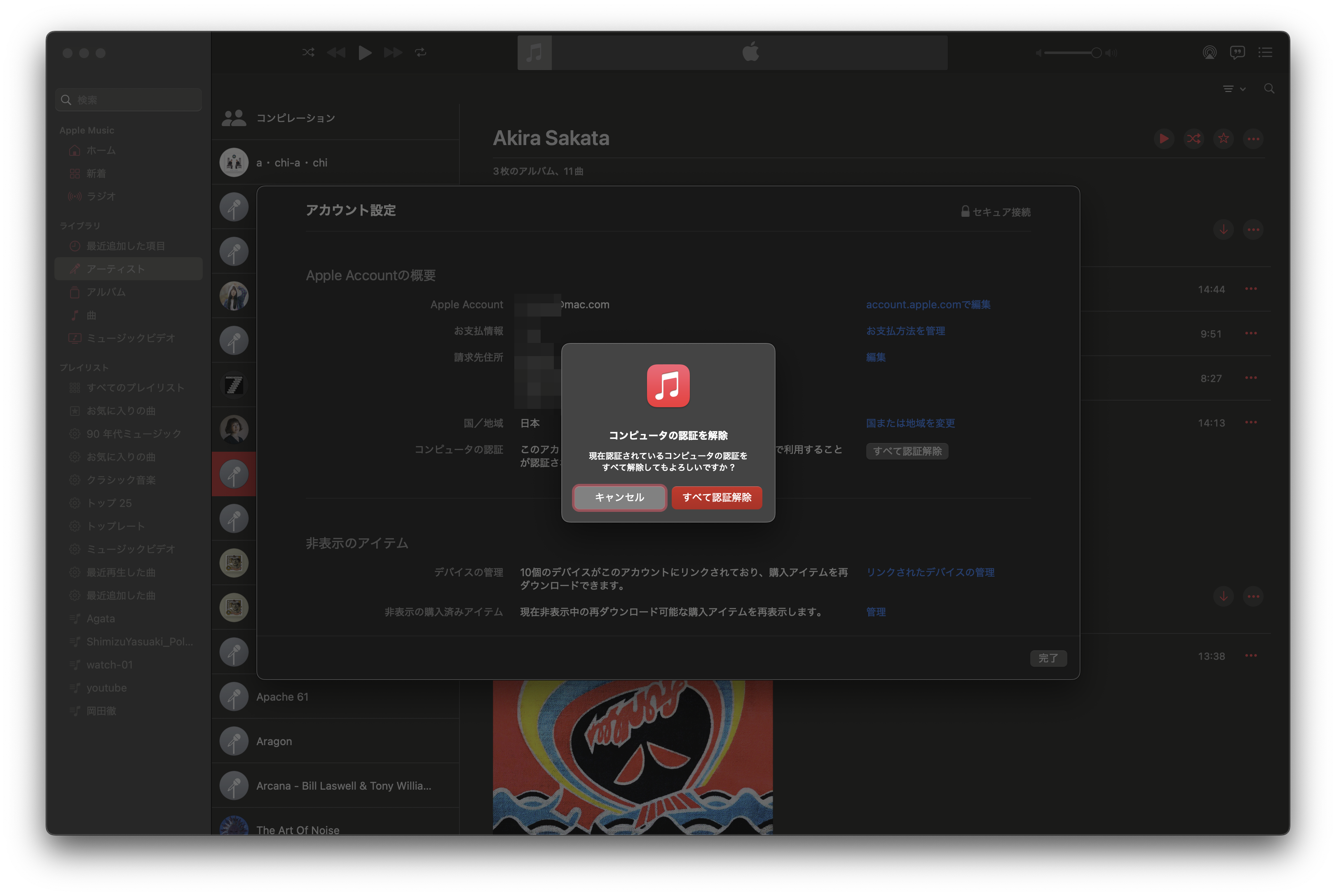 余談だが、その過程で、Apple Musicの同期もうまく行かなくなり、調べると旧iPhoneでのApple Musicの同期が生きていて、Macについてもアカウントが無効化されていたようなのだ。