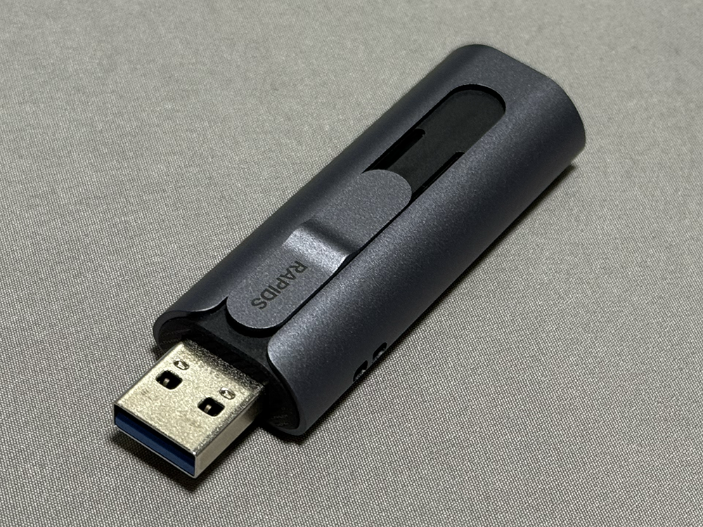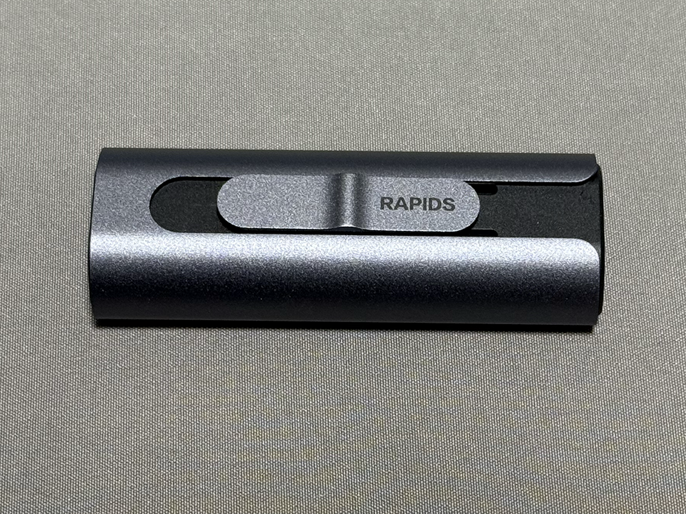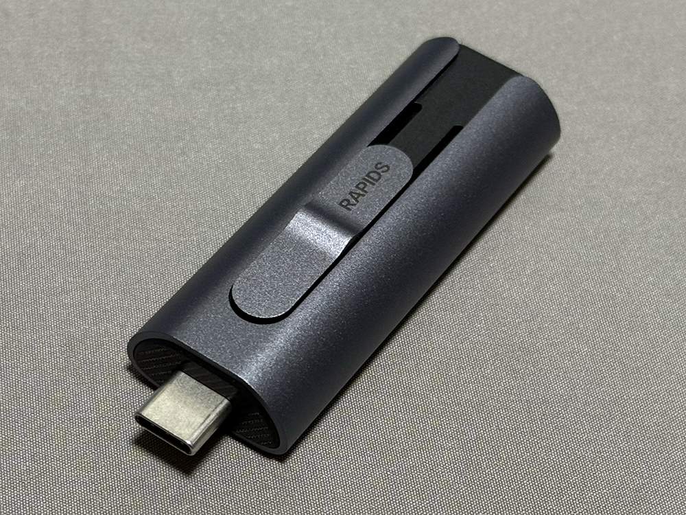 スライド式でUSB-AとC両方のコネクタがせり出す。スライドが結構硬めなので、コネクタを挿した際に凹むこともなさそうだ。
