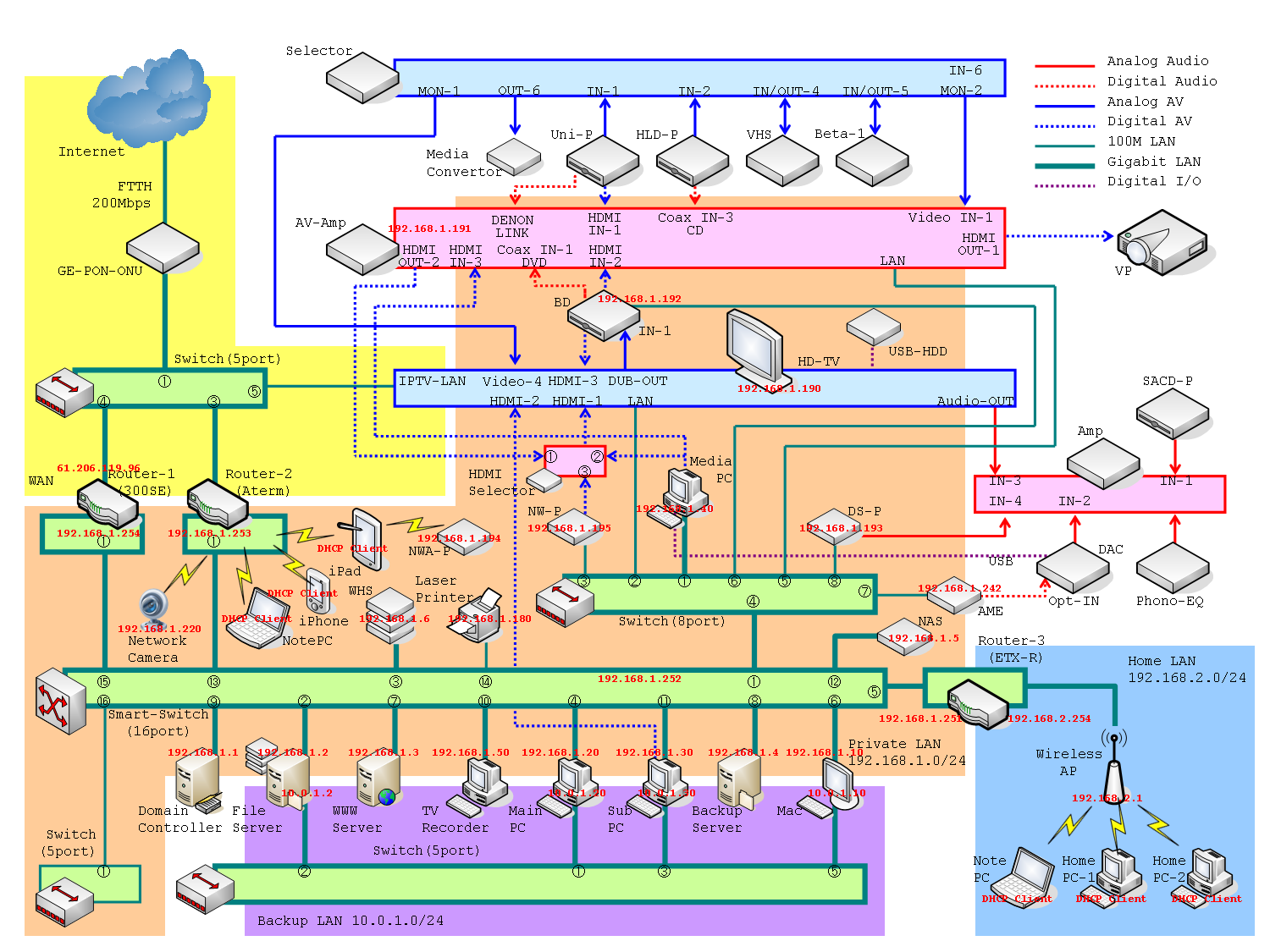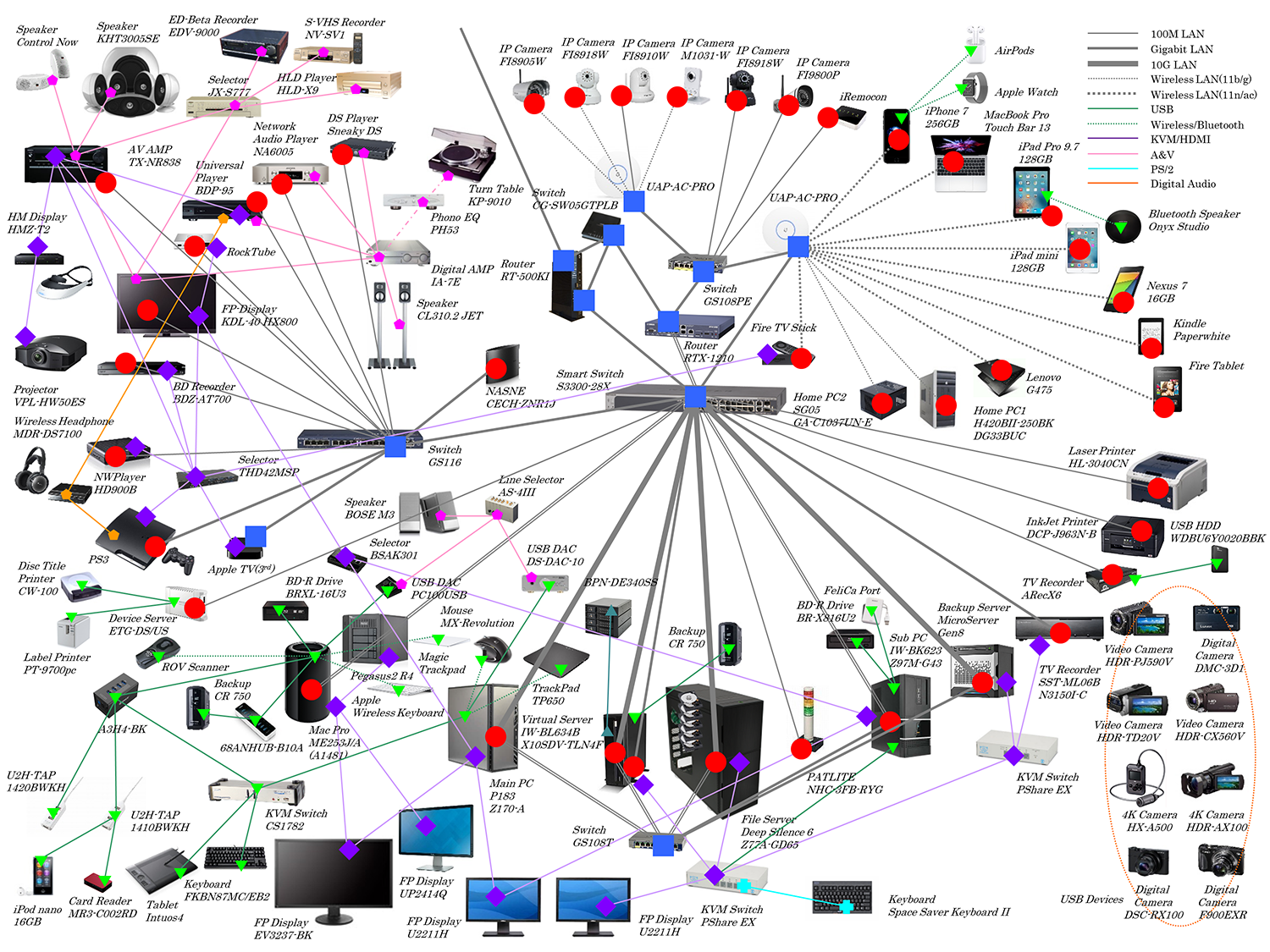PC、ネットワーク機器、情報家電等のネットワーク機器の構成図