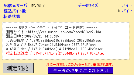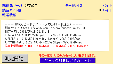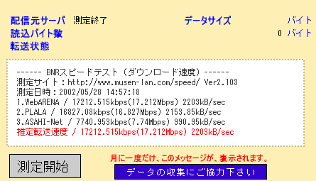 <02-12-27> プロバイダのINTERLINKがもの凄く遅いので、別プロバイダを真剣に検討。だって、ADSL以下のスピードだったりするんだぜ・・。色々調べた結果、BB Exciteがコストパフォーマンスに優れている。B Fletsのベーシックでも1000円しか月額利用料はかからない。固定IPはプラス3000円だが、これはベーシックの利点であるマルチセッションを活かして、INTERLINKを固定IP用として残せばいい。INTERLINKは2000円だから、この方が安くて都合が良い。で、同じセンチュリーのルータで、INTERLINKとBB Exciteを比較。あまりのスピードの違いに唖然。と言うか、INTERLINKが異常に遅いんだけどね。INTERLINKは地域IP網とのバックボーンが25Mしかなく、東京都内は激遅で、新規会員の加入停止と年明けの回線増強を計画しているようだけど、怪しいもんだよなあ。BB Excite快適。と言う事で、回線スピードの計測結果。いくつかの計測サイトで計測。平日の午後10時台で、同じセンチュリーのルータを利用。マシンは、BSpeedtestはWindows XPで、それ意外はMac OS X 10.2。ほとんどで十倍以上の違いだよ。 ![]() <02-12-26> なんか毎度だけど、netsolの設定のしかた忘れるので、備忘録。今回は、セカンダリDNSを変える場合。トップページから、ACCOUNT MANAGERタブを選ぶ。 Domain Managerタブを選ぶ。ドメイン名を入れて、GOボタンを押す。 LOGIN画面で、netsolのIDとpasswdを入力してLOGINボタンを押す。 Domain Namesから、自ドメイン名を選ぶ。 Edit Contacts/Manage DNSを選ぶ。 この画面で、登録住所の変更、DNSの変更ができる。 DNSの変更を選び、次の画面で、NOTHANKS。 ここで、プライマリとセカンダリのDNSを登録できる。 ちなみに、自分のDNSのIPアドレスが変わったような場合は、6/1に記載しているよに、HOST Managerを選んで、Modifyを選択し、自分のメールアドレスを入力し、Proceed toボタン。 自分のname server名を入力して、Findボタン。 ここで、IPアドレスやホスト名を変更できる。 次の画面で認証方式を選択するので、MAIL-FROMで進む。 後は、面倒な返信する。 大体、こんなとこ。これで忘れないでしょ。 <02-08-31> Net Stumblerと言う有名な無線LANのテストツールで、最寄り駅と新宿間の無線LAN状況をモニタリングする。ノートPCでNet Stumblerを起動したまま電車にのるだけ。駅数にして10程度だが、驚くべきことに35ものアクセスポイントを確認できた。WEPで暗号化しているのが、うち*件。Appleなものが*件、メルコらしきアクセスポイントが*件あった。電車で移動中なので、本当に一瞬キャッチするだけで、接続なんかできるわけないんだけど、車中でこれだけ引っかかるとは、正直言っておどろき。<02-08-18> なんか、メインのxpマシンがドメインに参加している振りしながら実際はしていない事が判明。色々調べたら、グローバルカタログを参照できないため、ログオンできていなかった。メインのドメインコントローラを切り替えた時に、新しいドメインコントローラをグローバルカタログサーバにしていなかった。つまり、二台あるドメインコントローラのうち、初めに構築したマシンを休止している時に、グローバルカタログを参照できない状態になっていた。メイン(二台目としてセットアップした)のドメインコントローラでイベントビューアを開いたら、エラーで真っ赤になっていた。いかん、いかん。グローバルカタログサーバは一つのサイトに複数あっても構わない。Active DirectoryサイトとサービスでNTDS Settingをいじって設定完了。二台のドメインコントローラ双方がグローバルカタログサーバになった。ついでに、操作マスタに関しても移行が完了していないものがあったので作業をする。ドメイン名前付けマスタはActive Directoryドメインと信頼関係で操作マスタの設定を選ぶ。スキーママスタの方はちょっと面倒。まず、adminpakをインストールして、Active Directoryスキーマをmmcに追加する。ドメインコントローラの変更を選び、変更先のサーバにフォーカスをあてる。その上で操作マスタを選び変更操作をするのだが、ここで注意が必要なのは、作業ユーザーにschema adminの権限が必要だと言う事。これがないと変更ボタンが押せない。備忘録として書き記しておこう。<02-08-15> 知人向けに限定してFTPサーバを公開する。双方FTTHなのでギガクラスのファイルのやり取りも可能だ。ルータとIIS両方でIPアドレスでのフィルタリングをかけたので、セキュリティもまず大丈夫だろう。スピードは2Mbpsくらいしか出ないみたい。同じプロバイダならもっと出るんだろうけど、異なるプロバイダ間だとこんなもんか。まあ、一番のボトルネックは、うちのプロバイダのインターリンクだな。これはバックボーンが弱い。<02-08-12> XR-300のファームがアップされたので、書き換える。知らないうちに二段階もアップデートされていた。しかし、相変わらずファームを書き換えた直後はLANポートが暫くおかしくなって動かなくなる。5分くらい放置しといて電源を再投入すると動くようになる。もしかすると、HUBとのオー