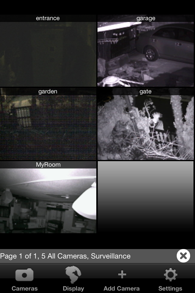 もう一つ、iPhone用のアプリ、Live Cams Pro。購入価格は170円(今は85円)。こちらも出来る事はIP CAM Viewerと大差ない。