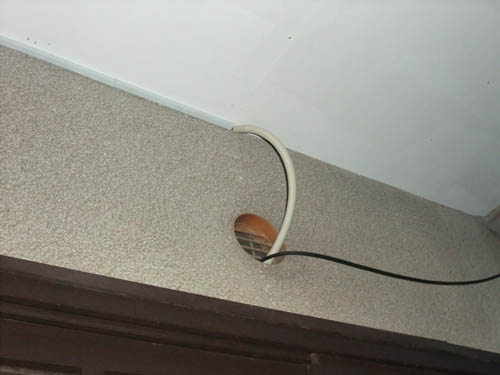 2Fのカメラの屋内引き込み部は透明なホースで防水。