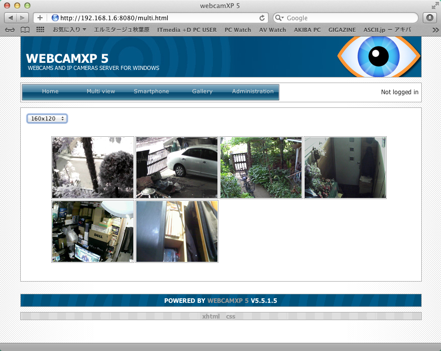 Buruirisに続き、もう一本、監視ソフト統合アプリを試してみた。webcam xp。こちらの方がメジャーかもしれない。厳密に言うと、まだベータ版扱いのwebcam7の方を試して見た。基本機能やUIは一緒だが、FlashやMPEG4でのストリーミングができるみたい。