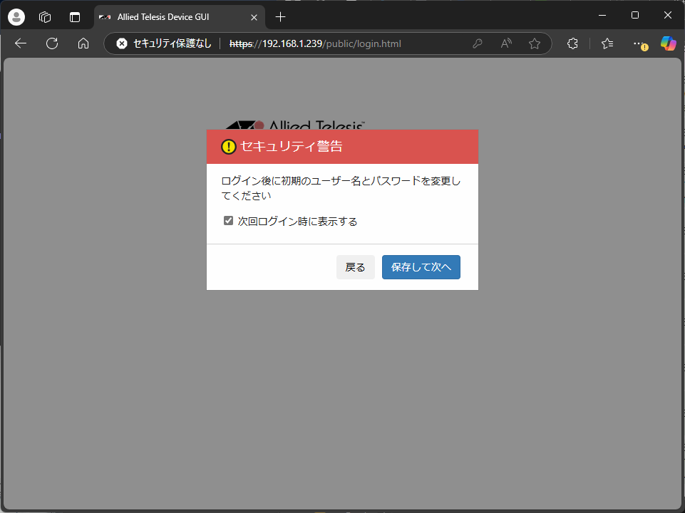 初期ID/パスワードではログインできない。これは初期化するしかない。