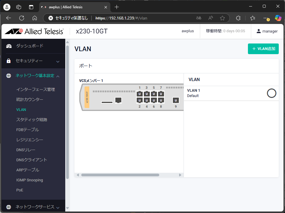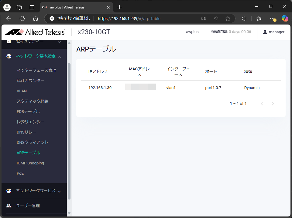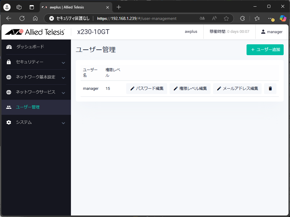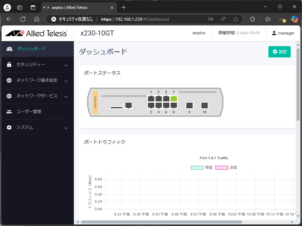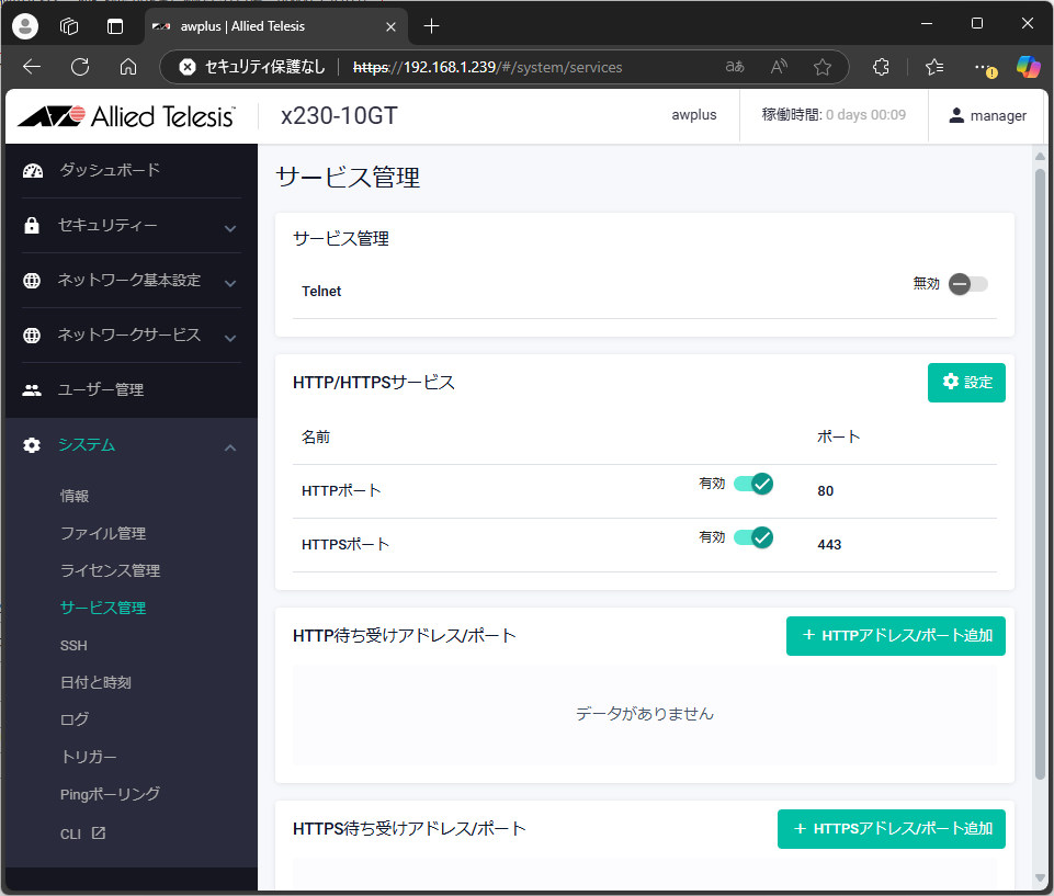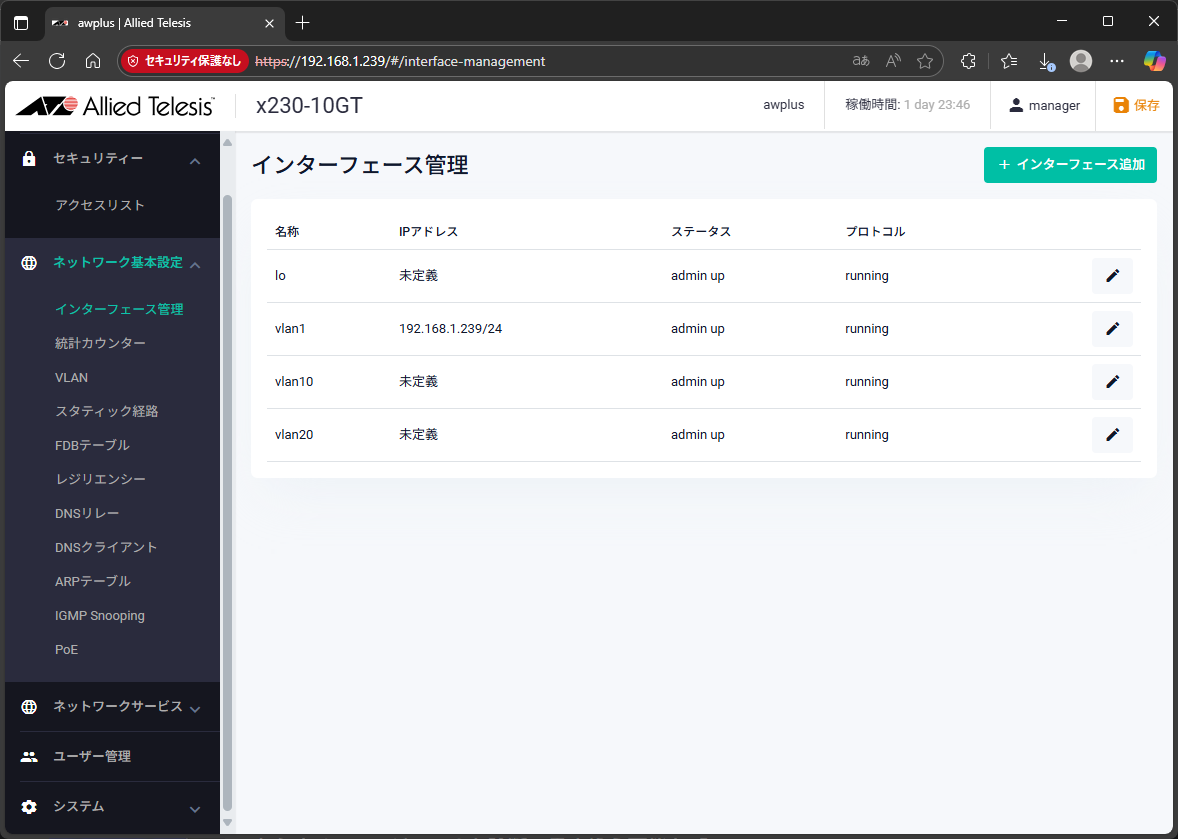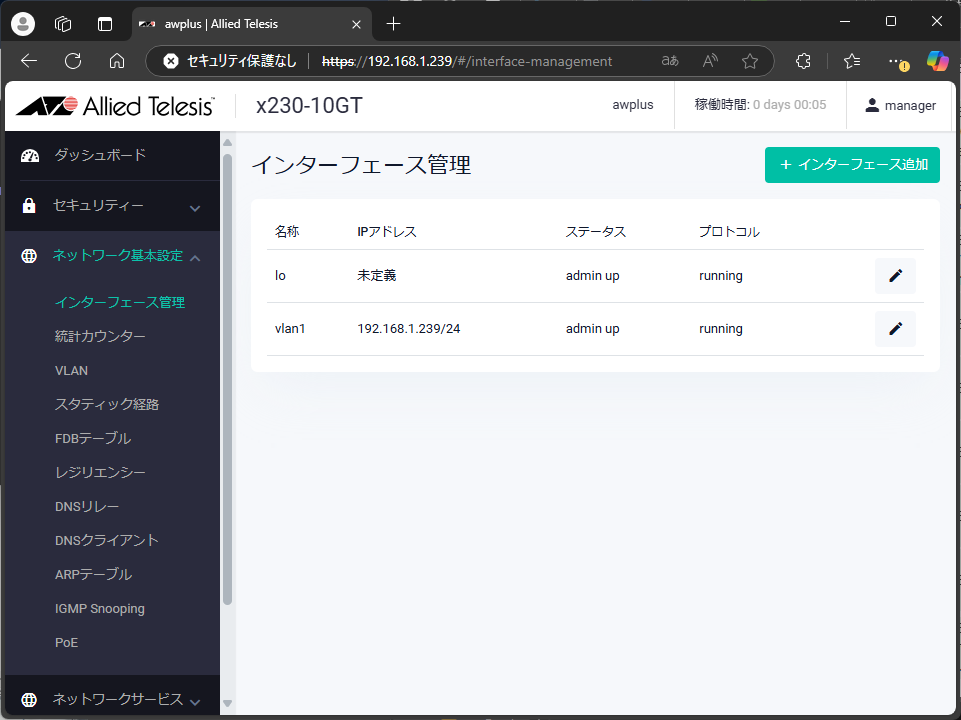これで、新しいIPアドレスでWebブラウザからログインできるようになった。