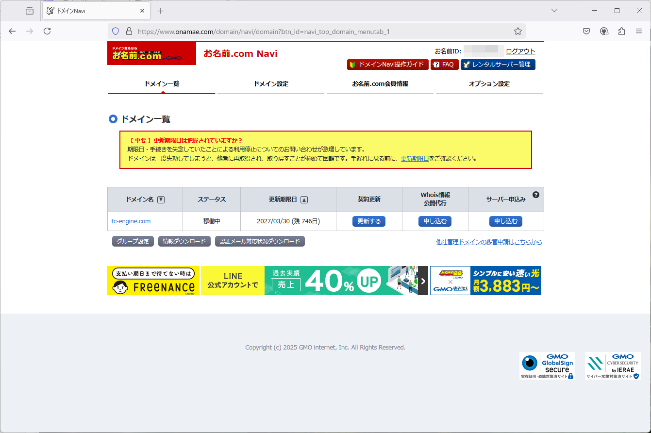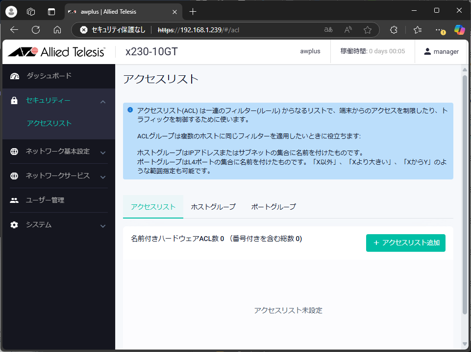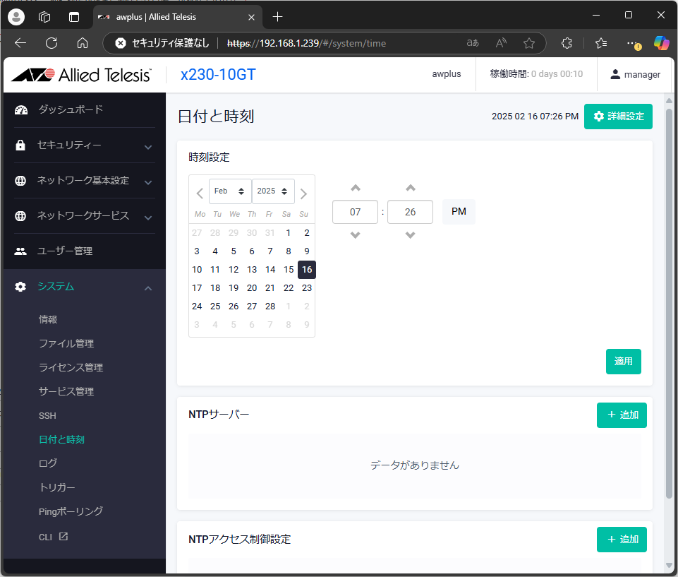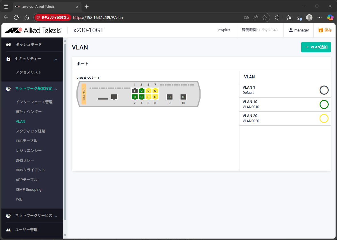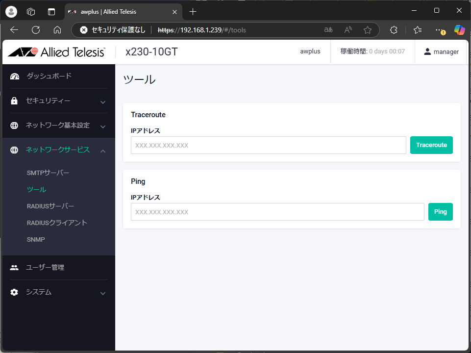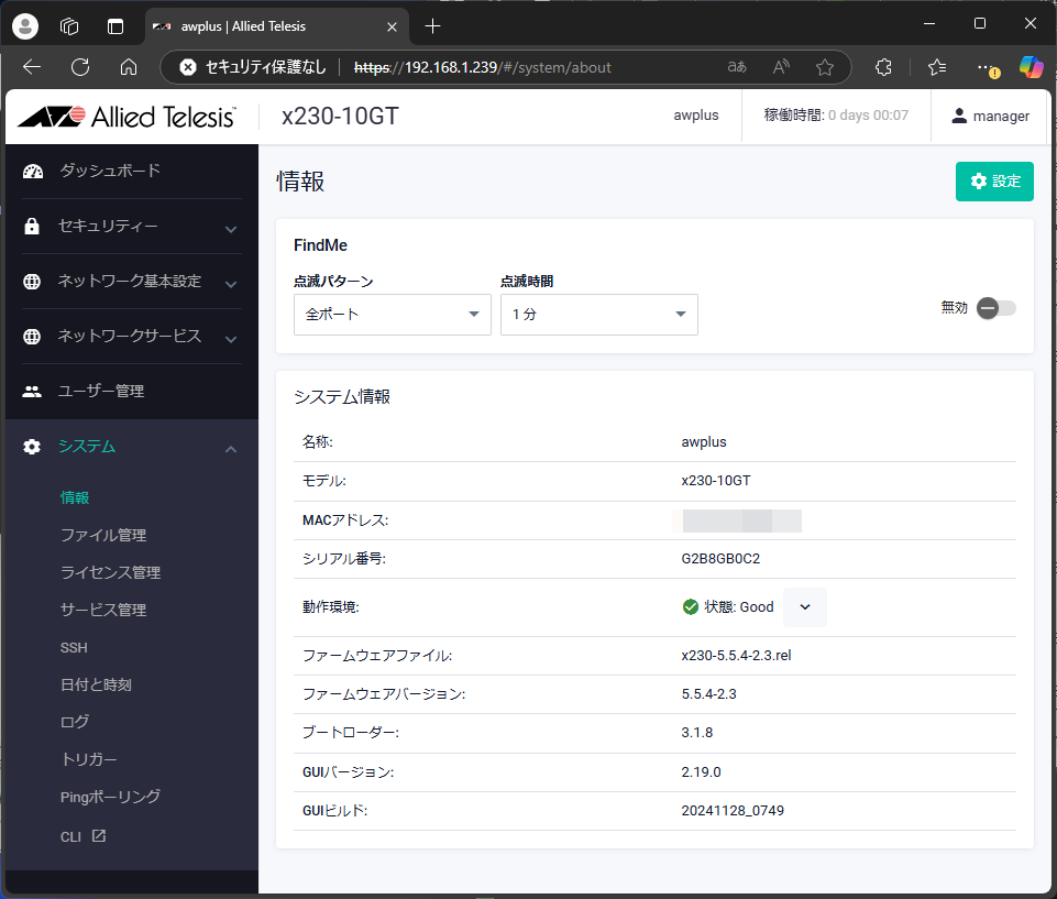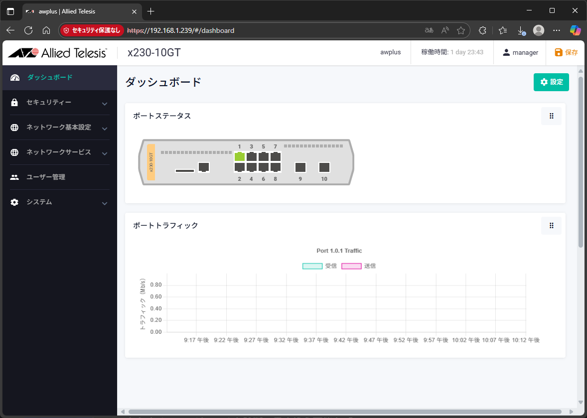 これで、新しいIPアドレスでWebブラウザからログインできるようになった。