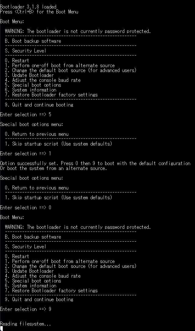 9. Quit and continue bootingを選択し、システムを起動