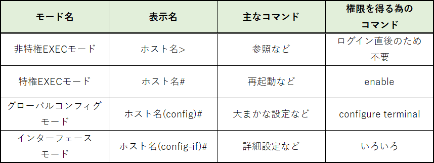 一つ前のモードに戻るには、[exit]コマンドを使用する。