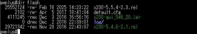 dir flashコマンドでダウンロードされたファイルを確認。