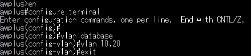 CISCO製品とほぼ同じ操作性のアライドの最新コマンド操作。設定する内容に応じてモードを変更する。