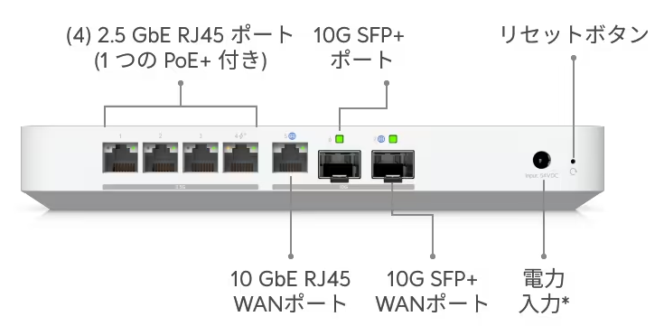 上位機種のMax(Apple製品とMaxとUltraの上下関係が逆なのでややこしい・・)はLAN側4ポートも全て2.5G。さらに上位のFiberは、WAN側がSFP+の2ポートと、10GBase-Tも備えている。