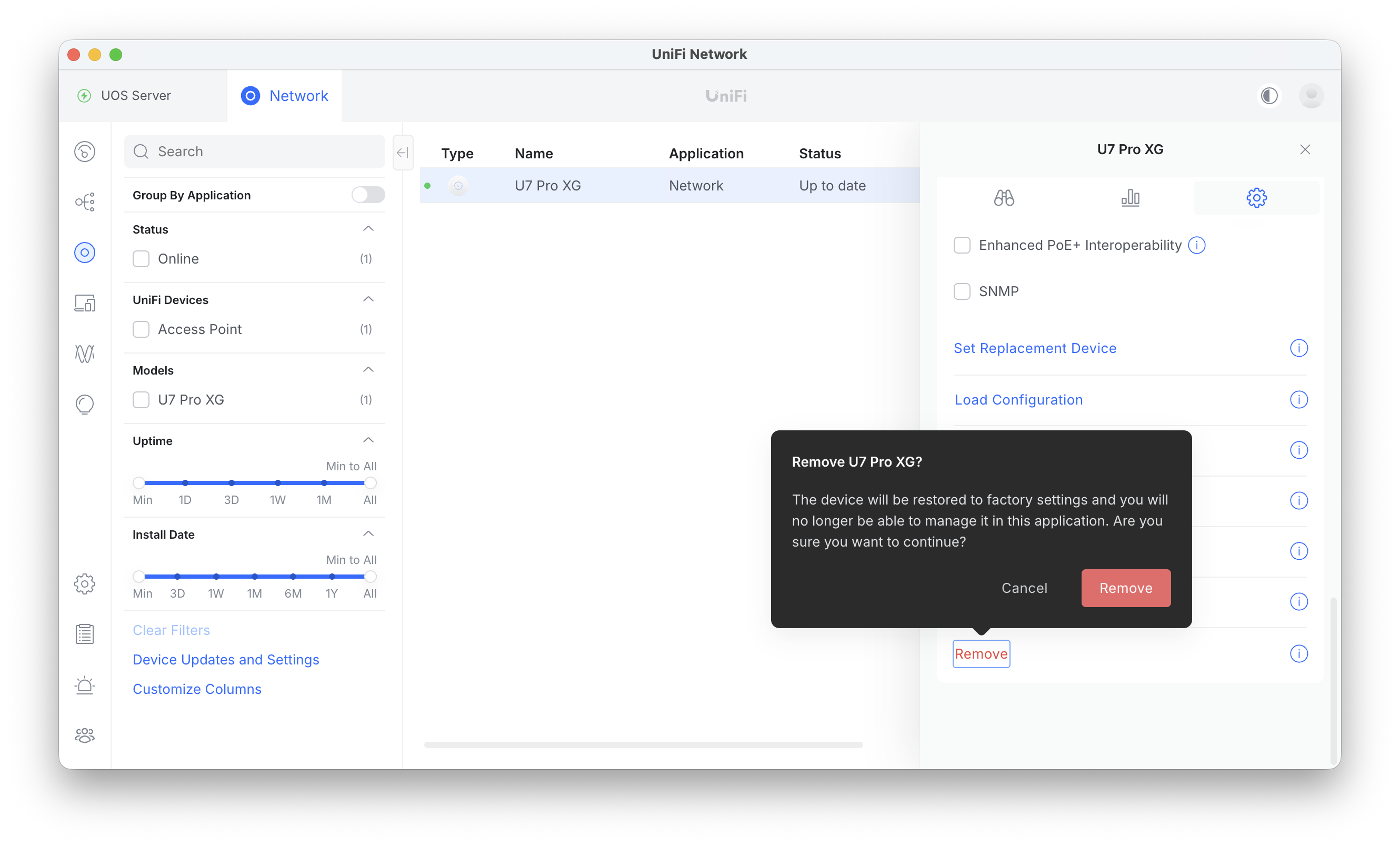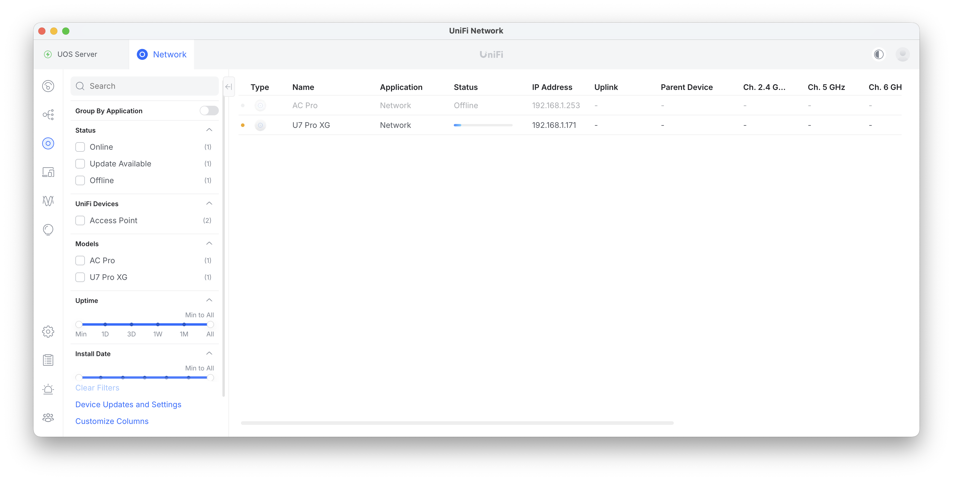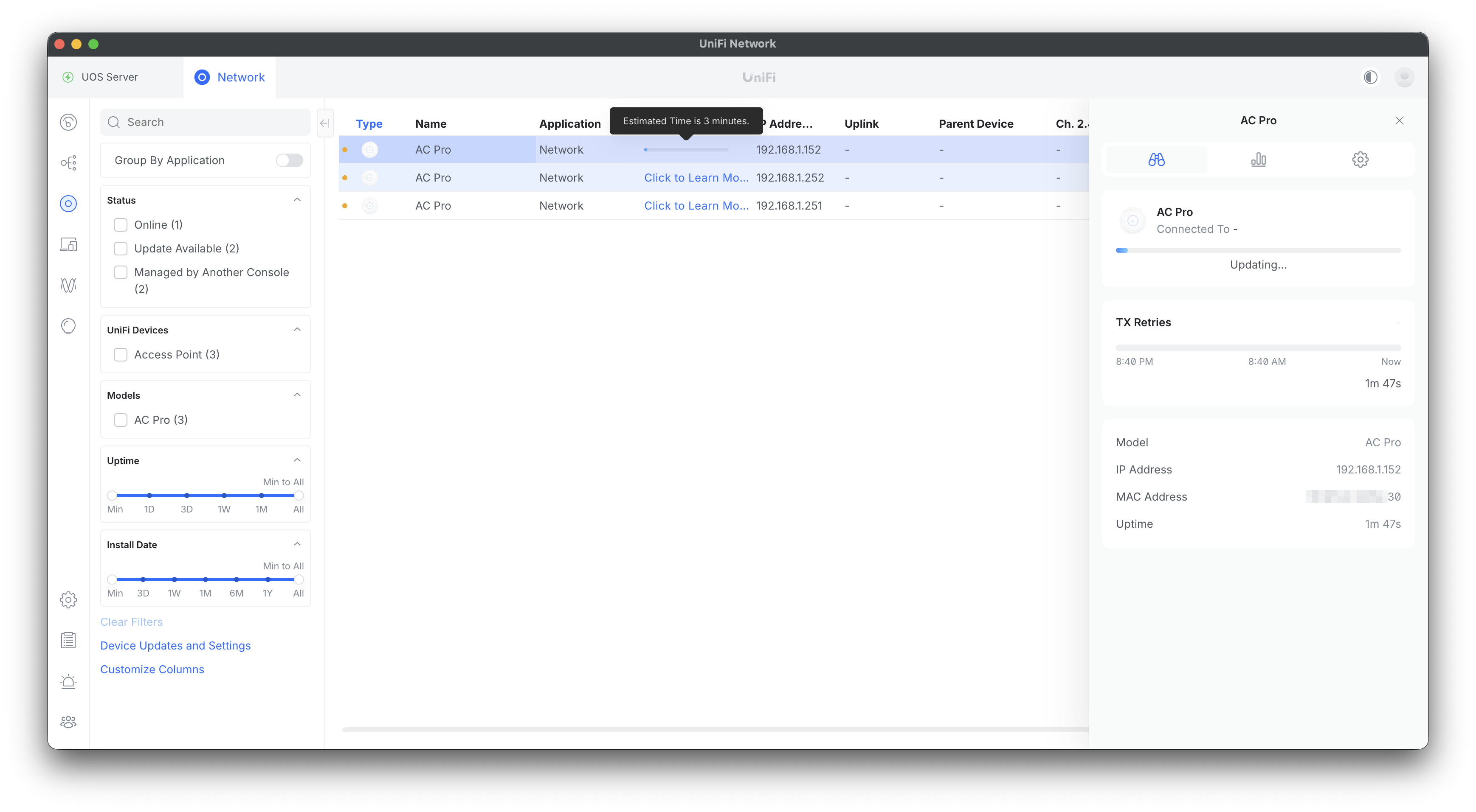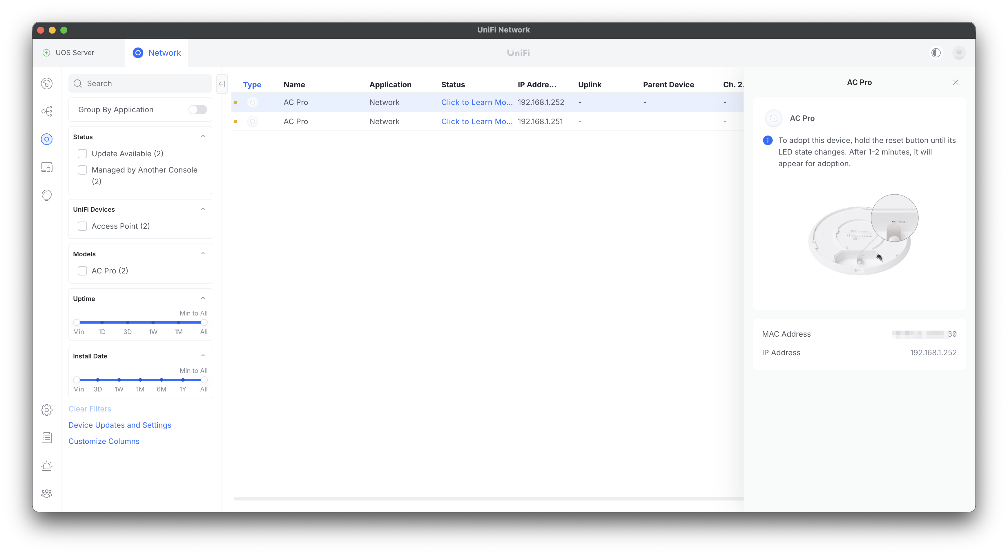 暫くすると、Mac用コントローラに新しいUniFiデバイスが表示される。