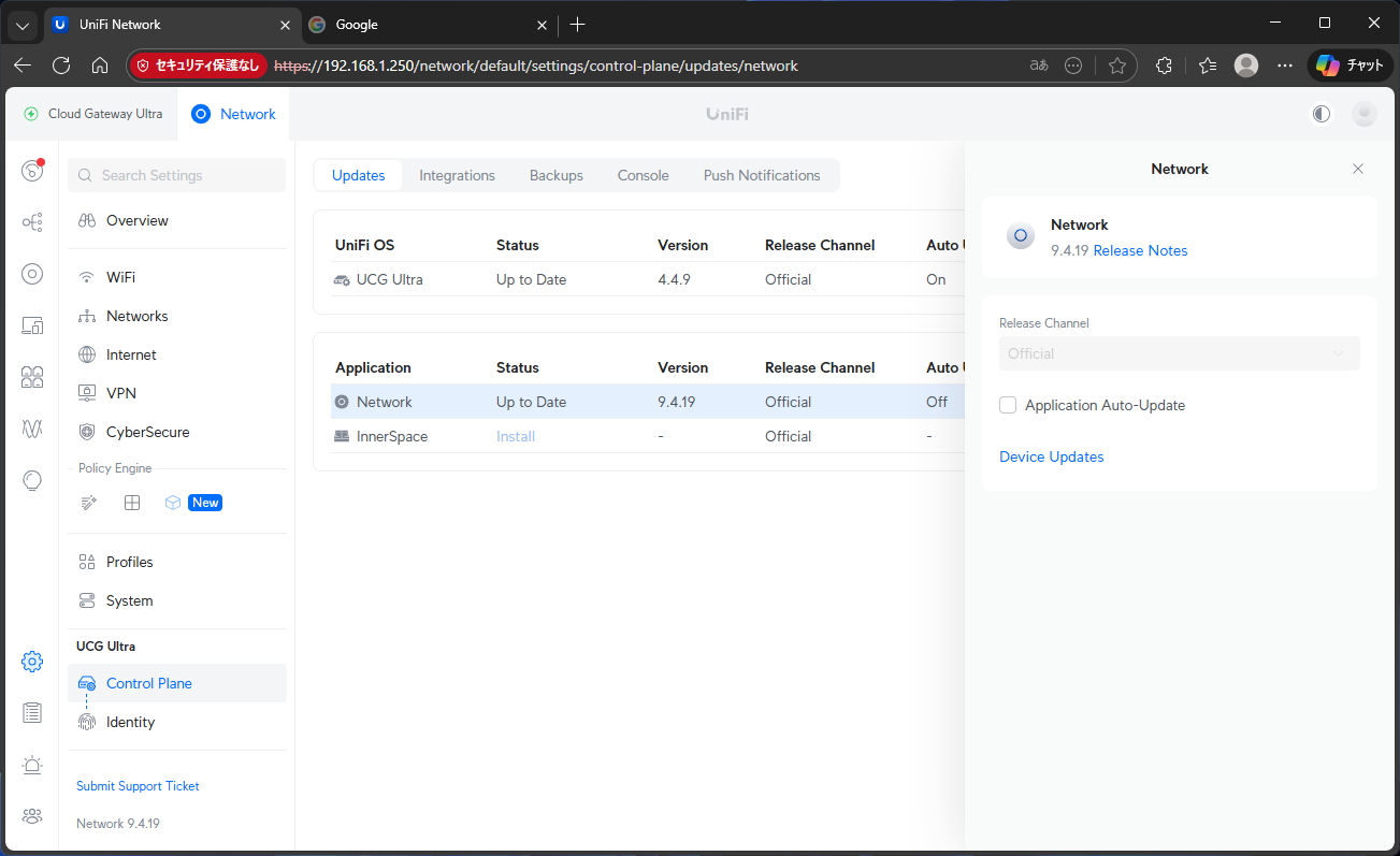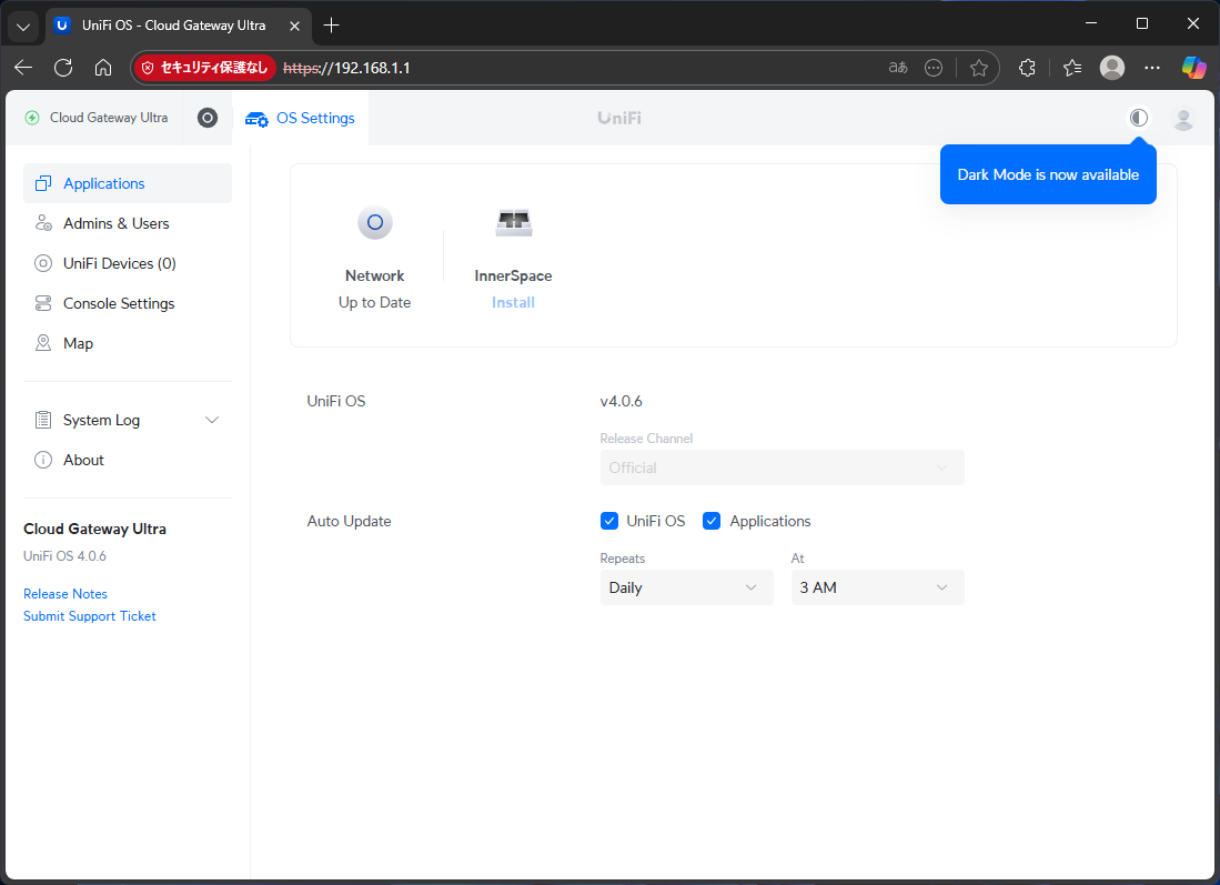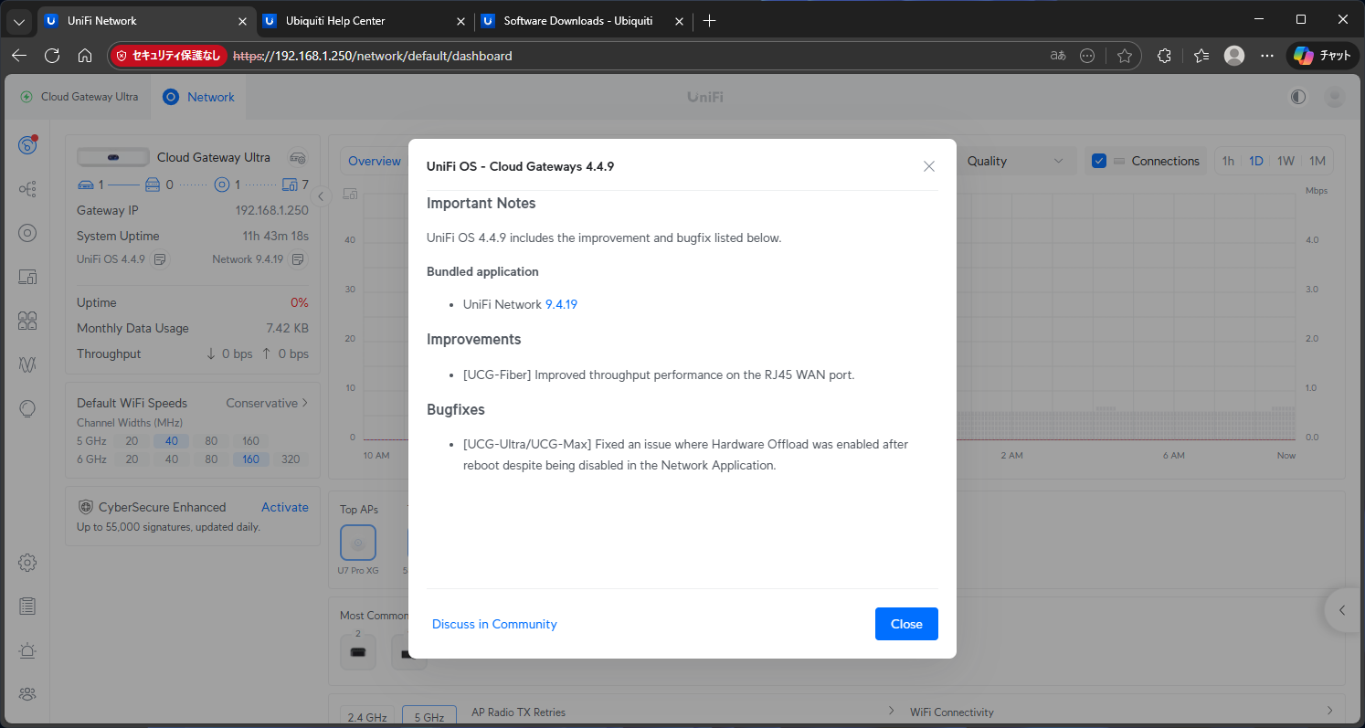 ※UniFi Network アプリ経由ではなく CGU 本体(UniFi OS) の更新手順です。