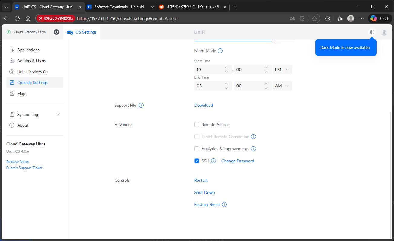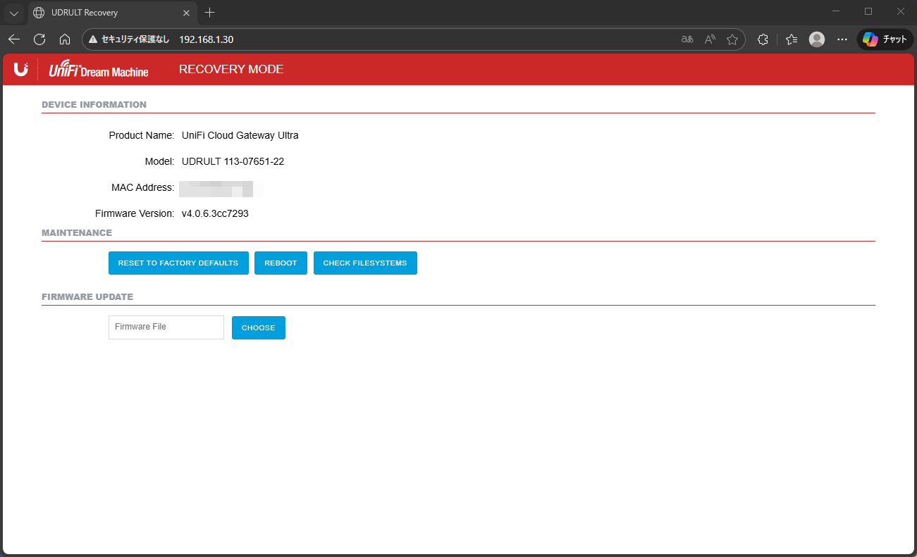 アップデートに使う UniFi OS 用 .bin ファイル を入手済み