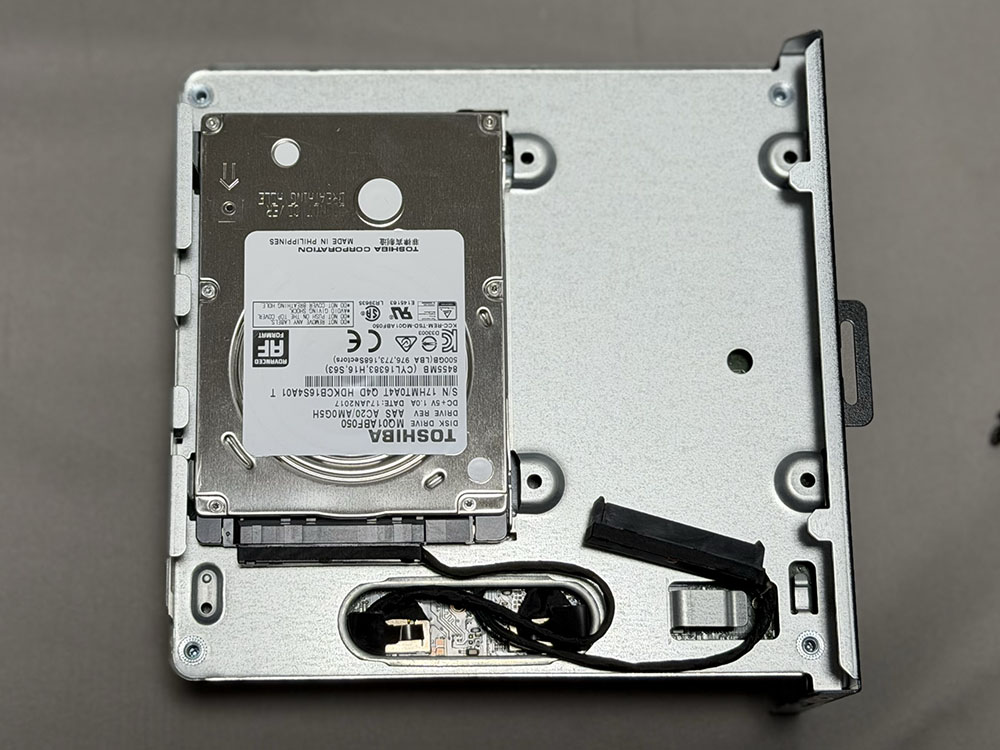 余談だが、分解中にSATAのリボンケーブルが外れてしまい、挿し直した。ちゃんとSATA SSDを認識するか気になっていたので、移設前にテスト的に増設してみた。