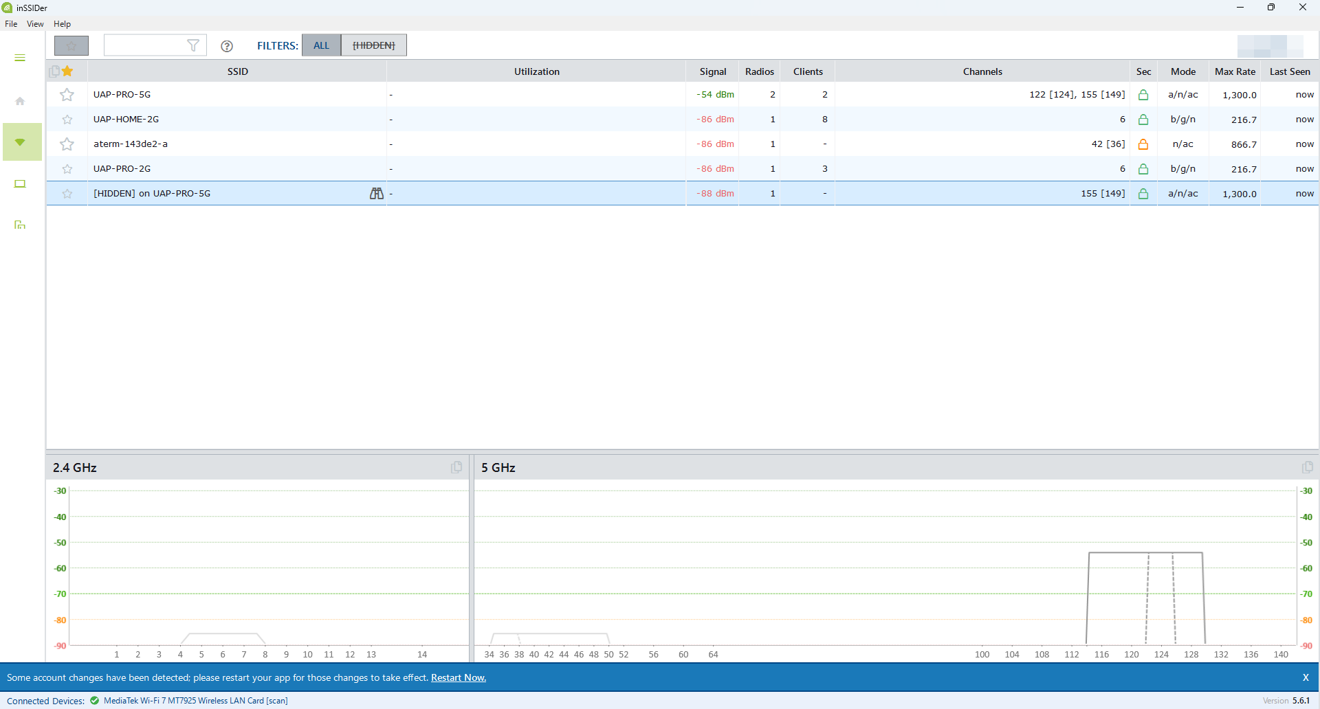 また、Wi-Fi Explorerもそうだったのだけど、2FのAPのSSIDの表記に、[HIDDEN]と書かれている。