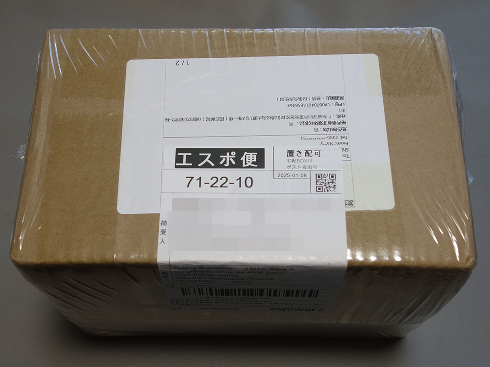 Aliexpressで購入したにしてはかなりしっかりした梱包で到着した。防水ラッピングされた茶段の中にエアクッションに包まれたパッケージが2つ。雨にも強く、これなら押しつぶされることもない。