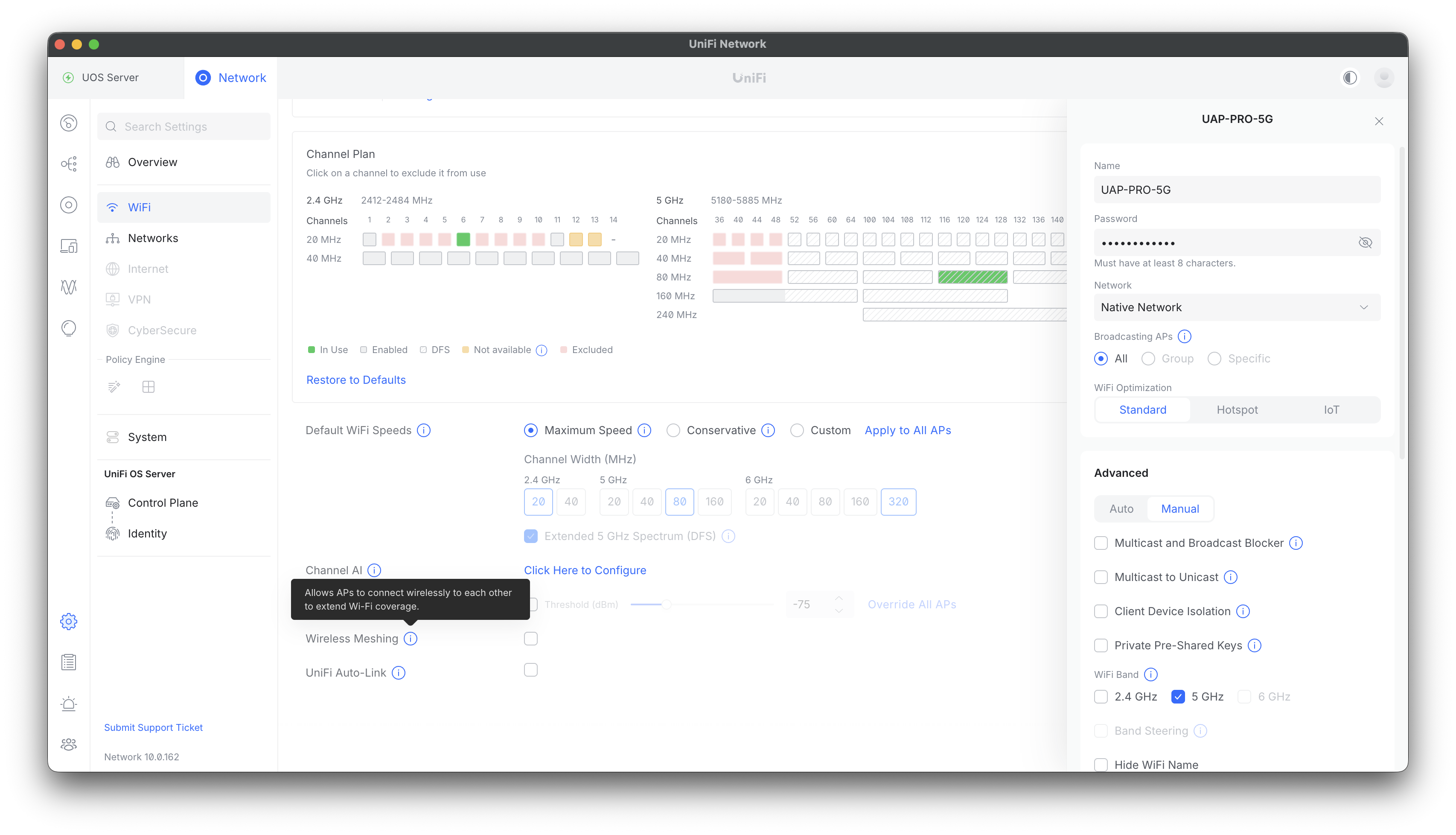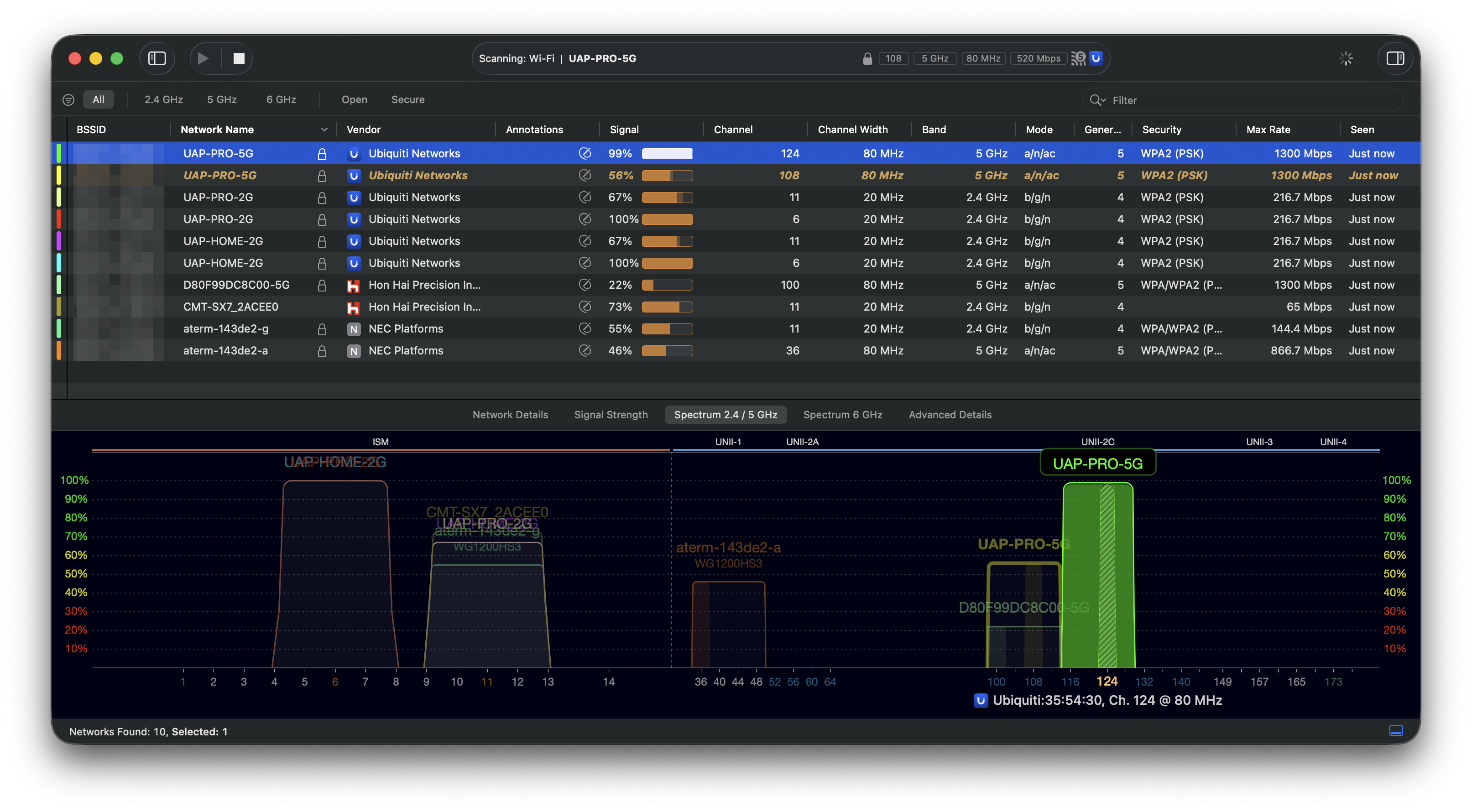 Mac用のサーベイアプリ、Wi-Fi Explorerで、登録したAC Proの5G帯の電波が表示されない。