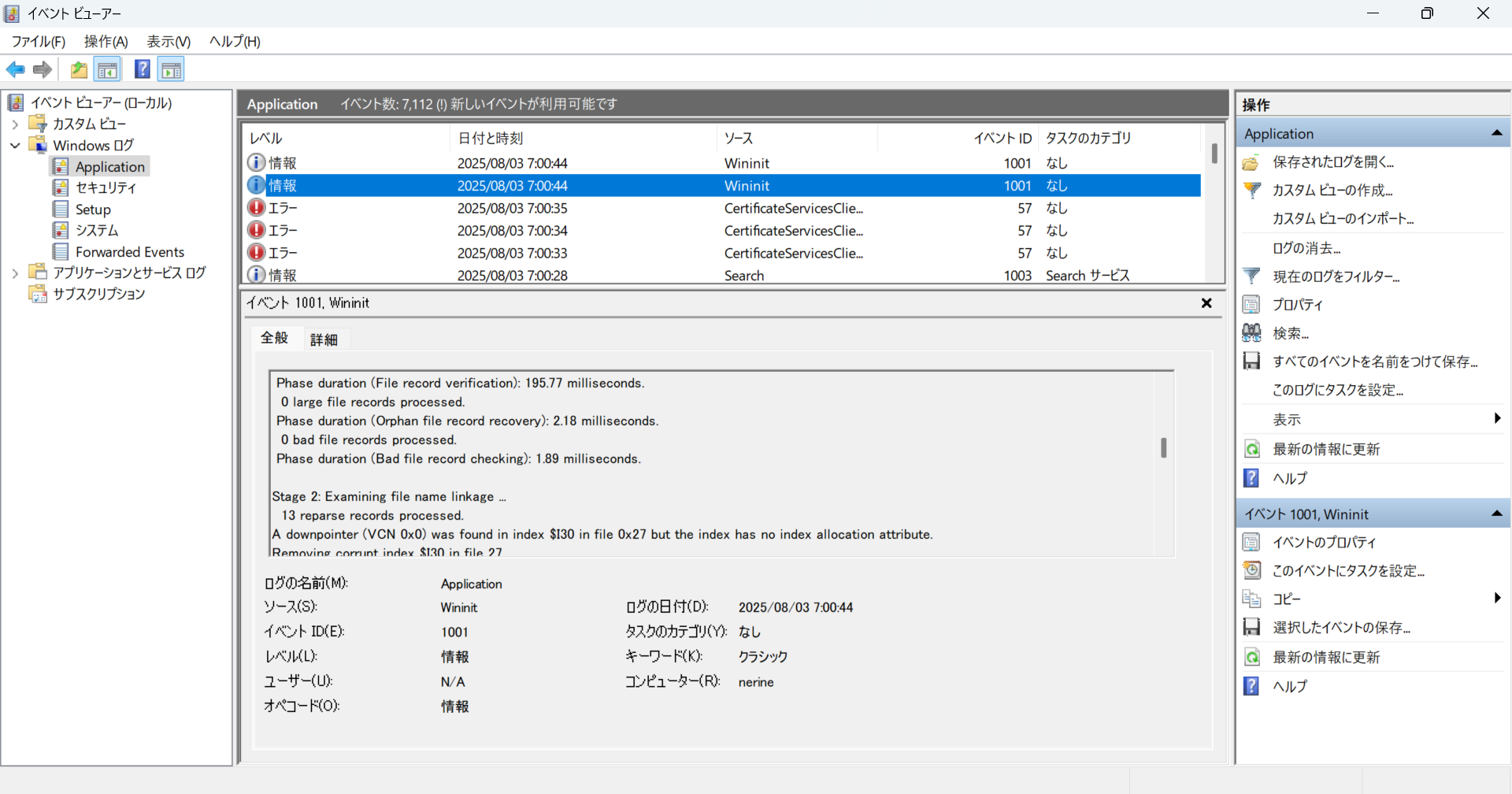 おかしいな・・と、PCを再起動して調査。ちなみにこの時、再起動に異様に時間を要し、途中諦めて強制電源断をする。
