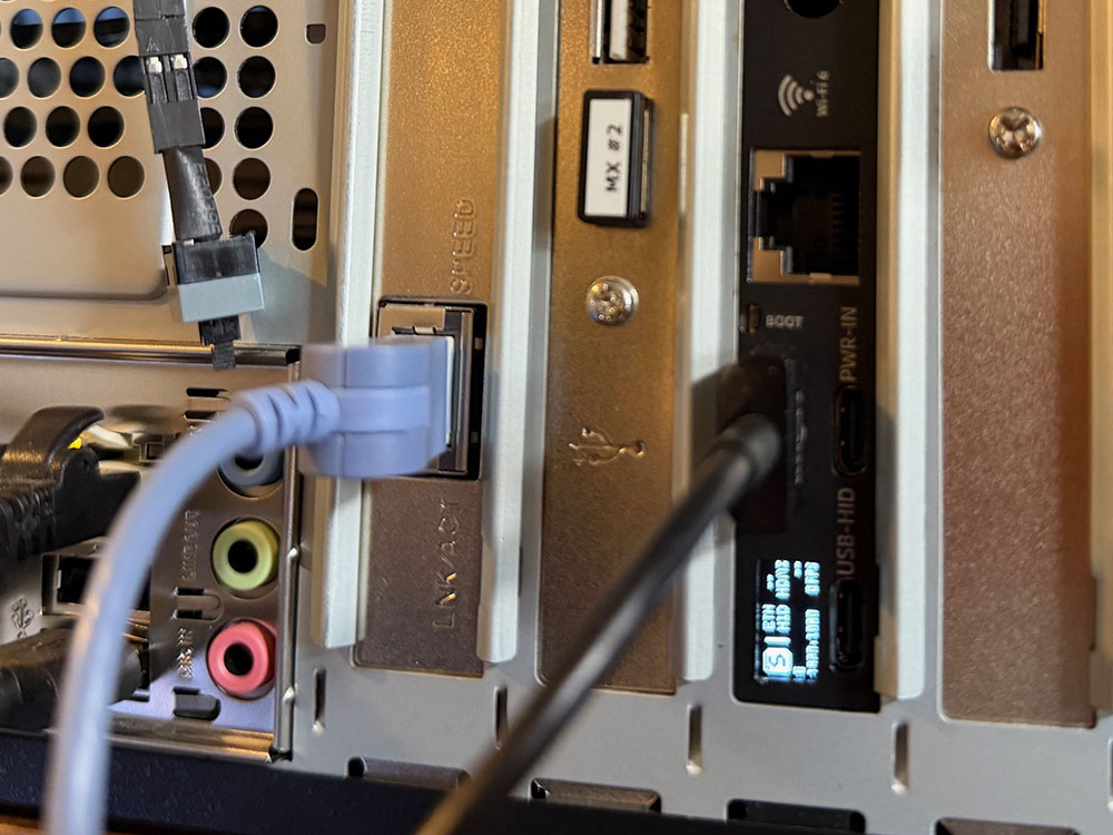 仕方ないので、内部USB配線を止めて、USBケーブルを外回しにして試してみる。