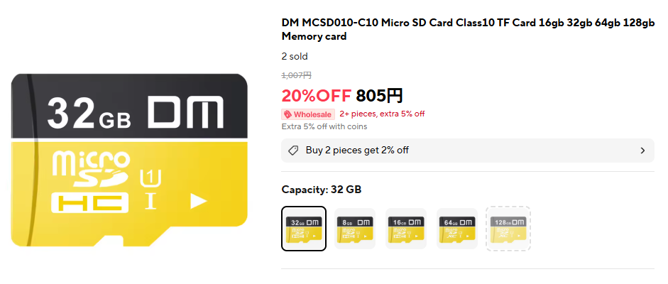microSDカードは、以前購入した個体はKIOXIAのカードだったが、今回の個体はDMと書かれた謎のブランド。