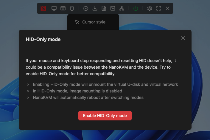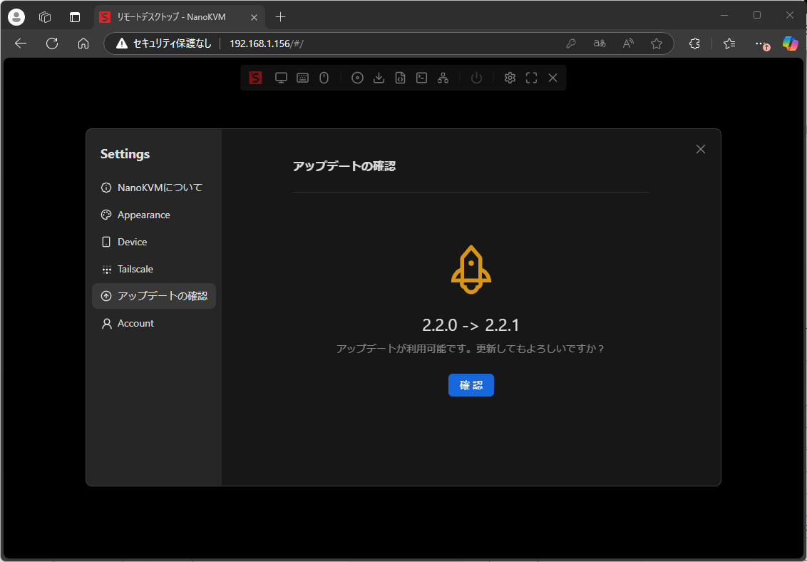 一抹の不安は残るものの、取り敢えず起動はしたので、NanoKVMの基本機能の動作確認を行うことにする。