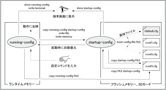 以下がrunning-configとstartup-configの関係(アライドテレシスWebサイトより)。