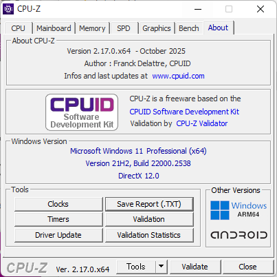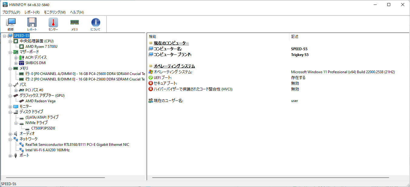 ハードウェアの情報取得ツールも走らせる。