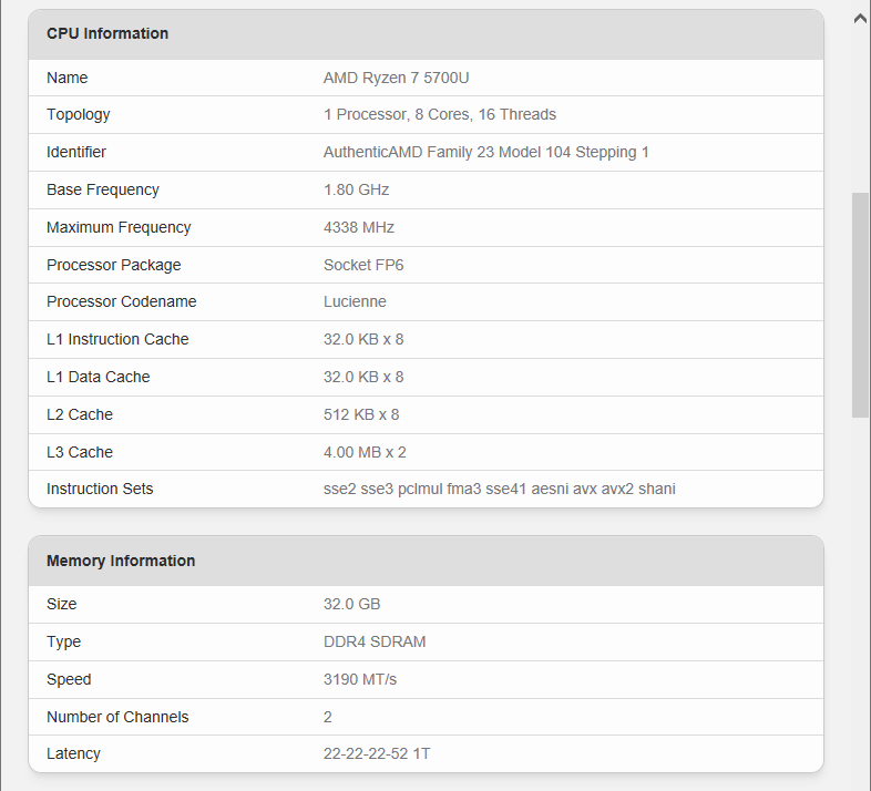 CPU情報を確認する。