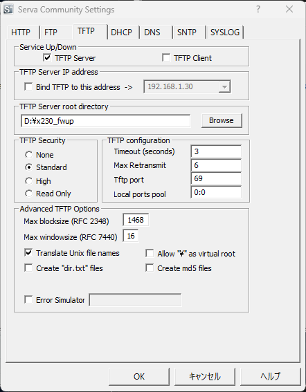 再起動後、configを保存しないと次回起動時に元の設定に戻ってしまうので注意が必要。