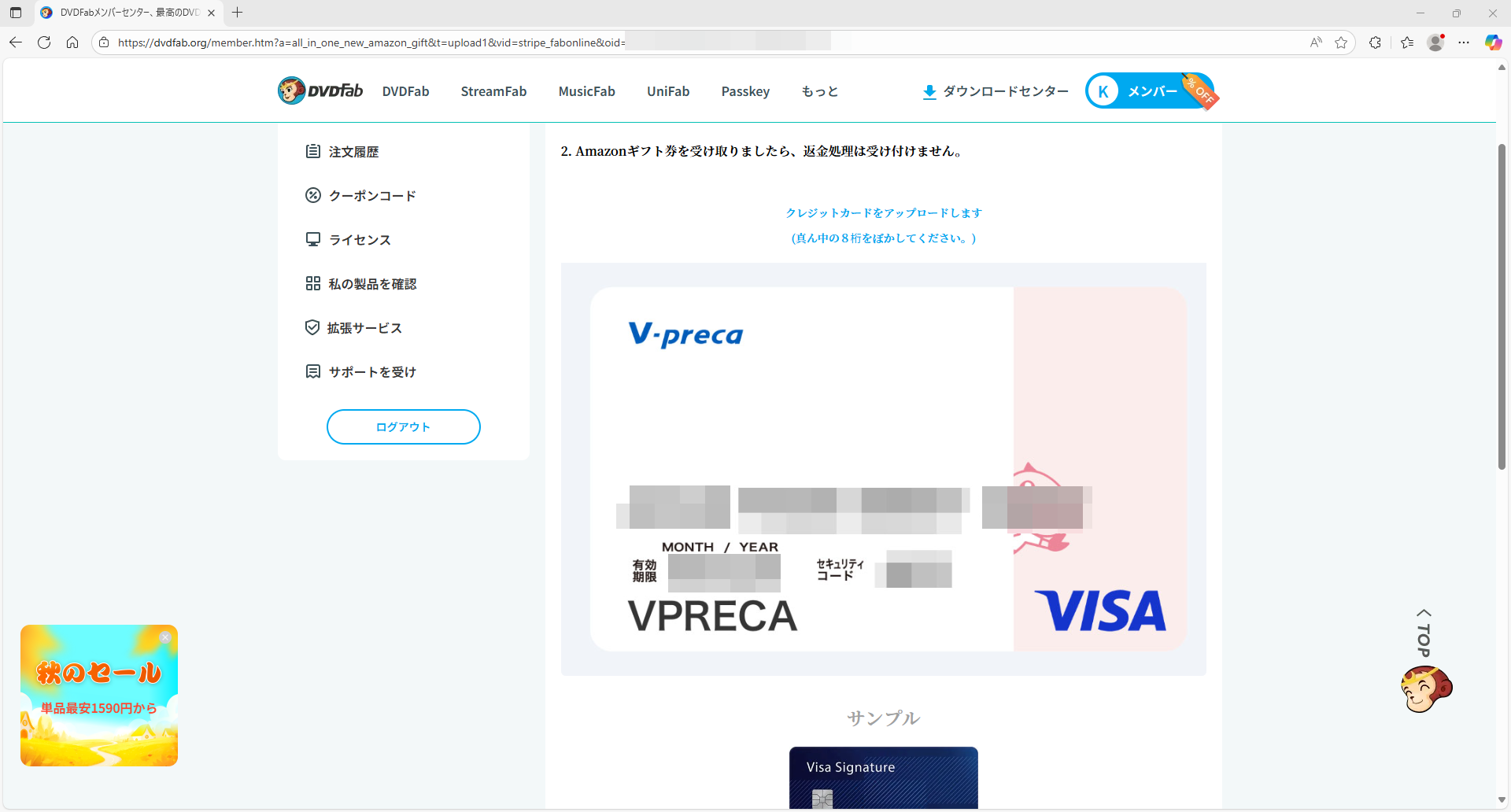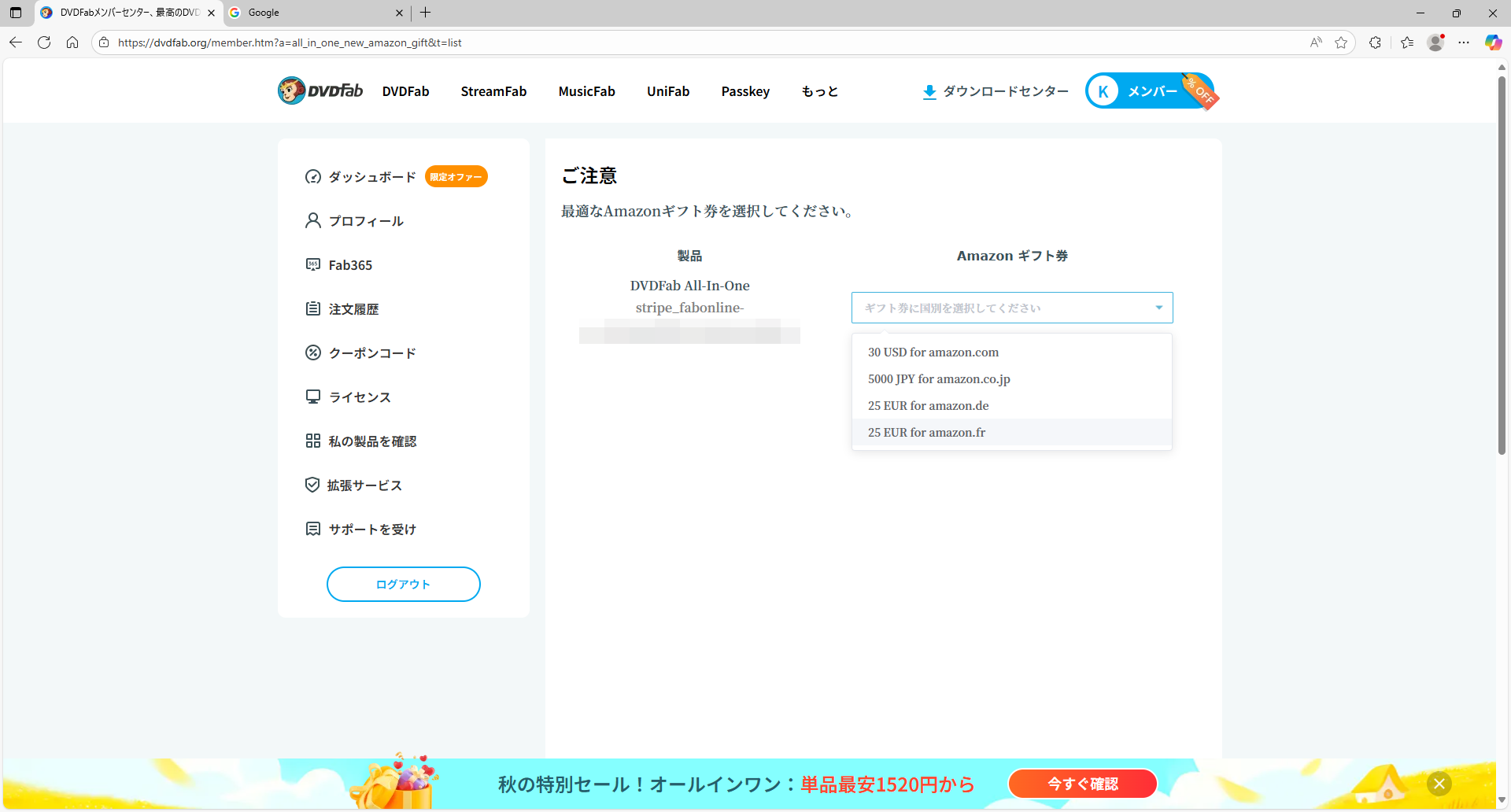 仕方ないので、支払い方法を通常のamazonカードを使った決済で注文更新を行う。