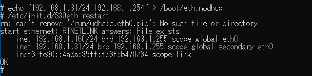 確認後、rebootする。