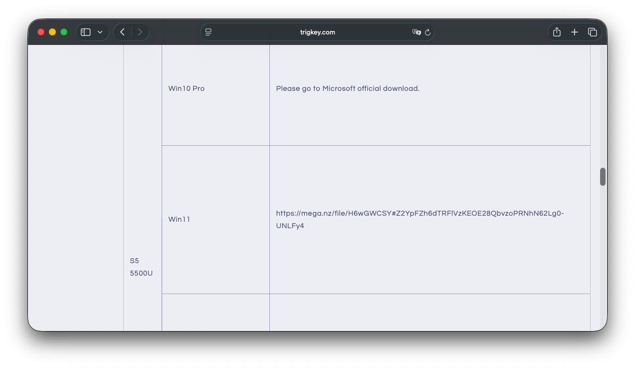 一応、Trigkeyでもドライバを公開しているページがあるのだが、自分の5700Uモデルのドライバパックはないようだ。5500Uと言う一ランク下のCPUのモデルはあったので、それ用のパックを落としておく。