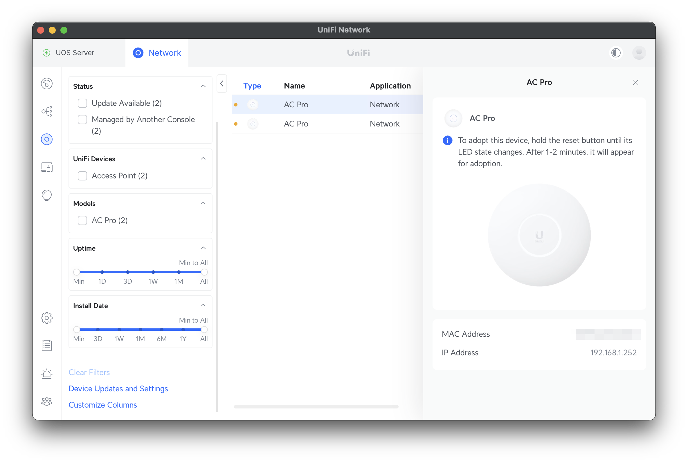 ネットワーク内にあるAC-Proが2台きちんと表示される。