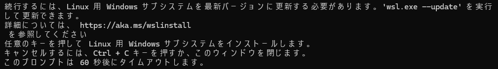 続行するには、Linux用Windowsサブシステムを最新バージョンに更新する必要があります。