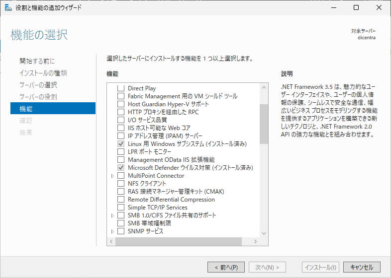 Linux用Windowsサブシステムが本当にインストールされているか、役割と機能の追加で確認すると、確かにチェックマークが付いている。